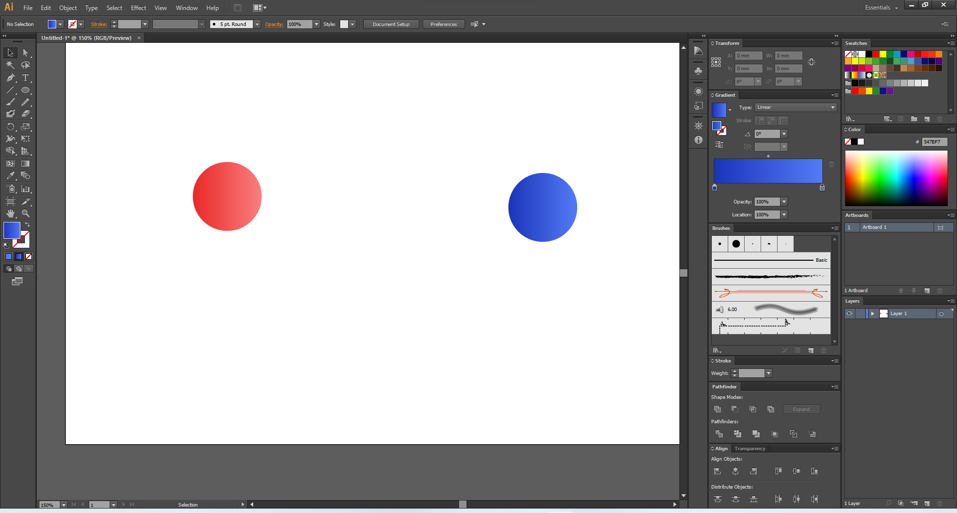 그라데이션 원을 2개 그려주세요!