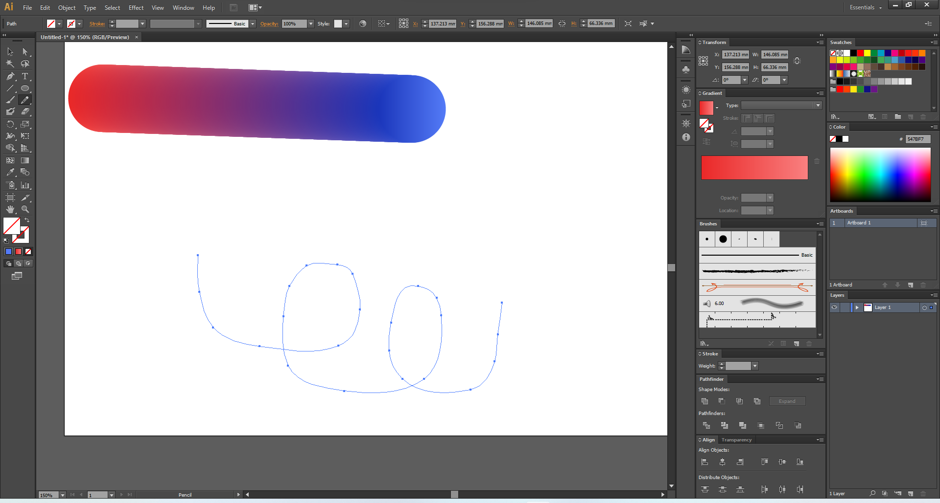 연필 도구로 패쓰를 그려주세요.
