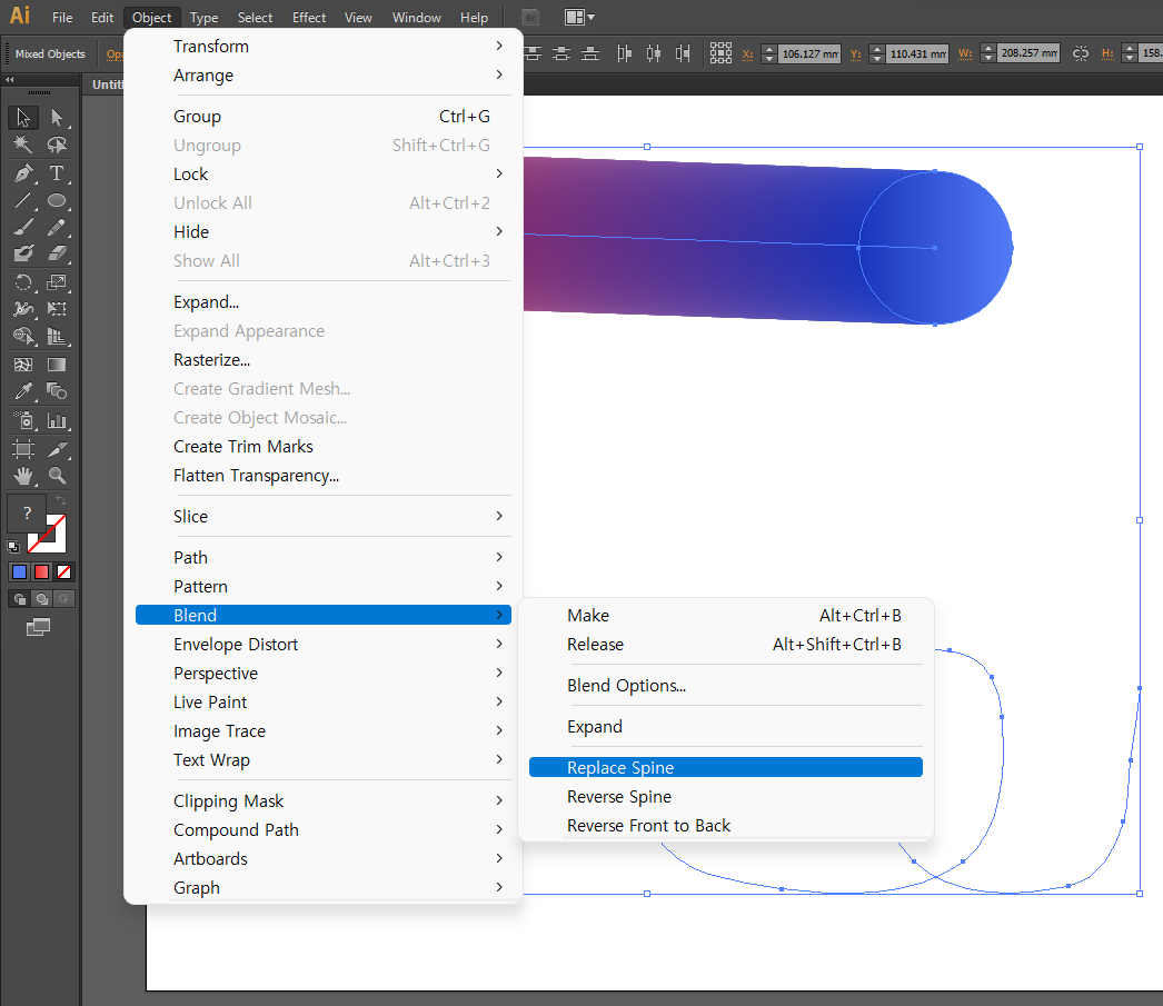 Object - Blend - Replace Spine을 눌러 주면,