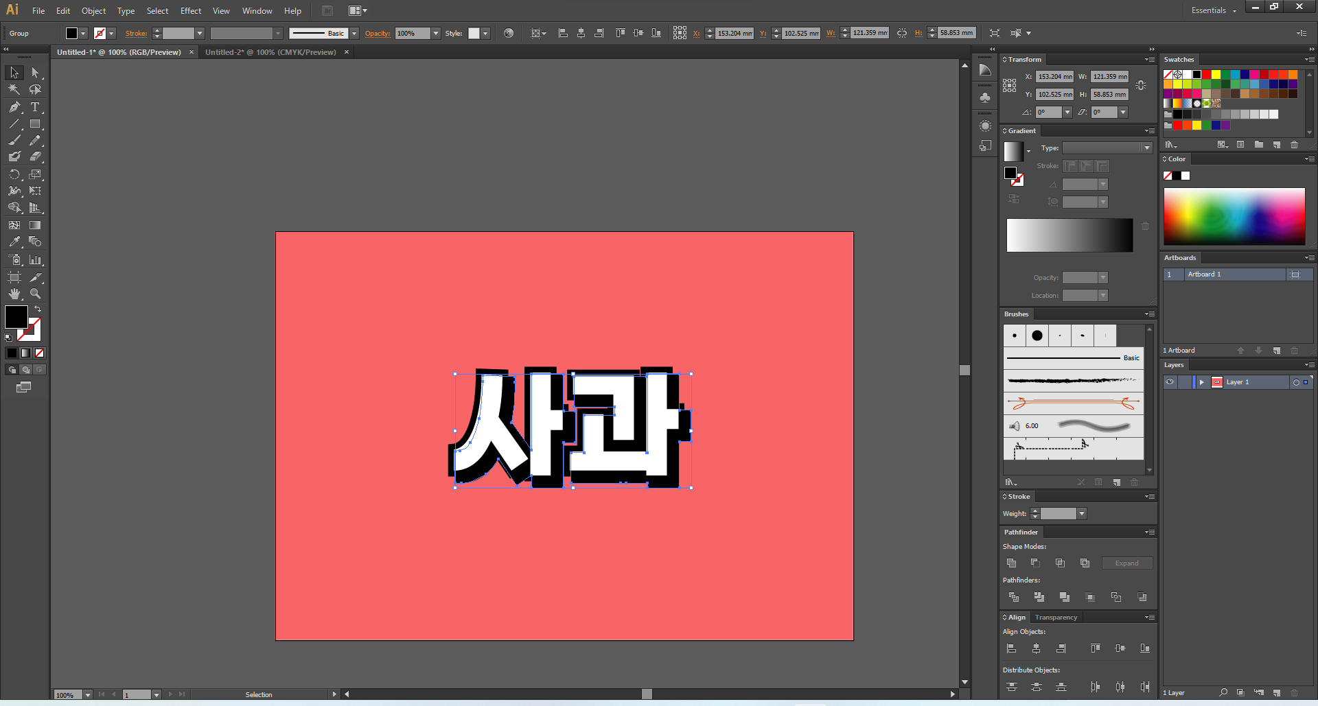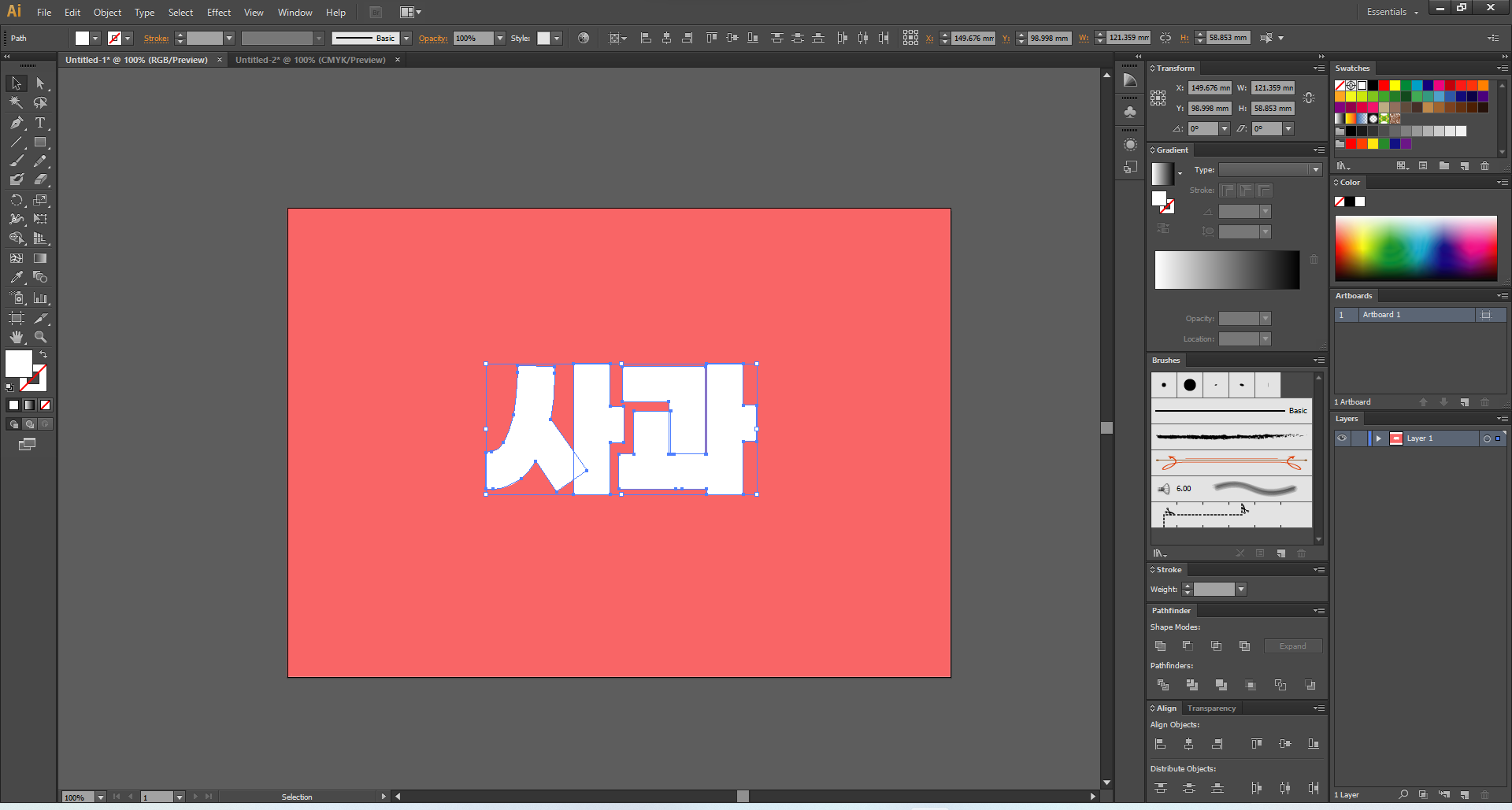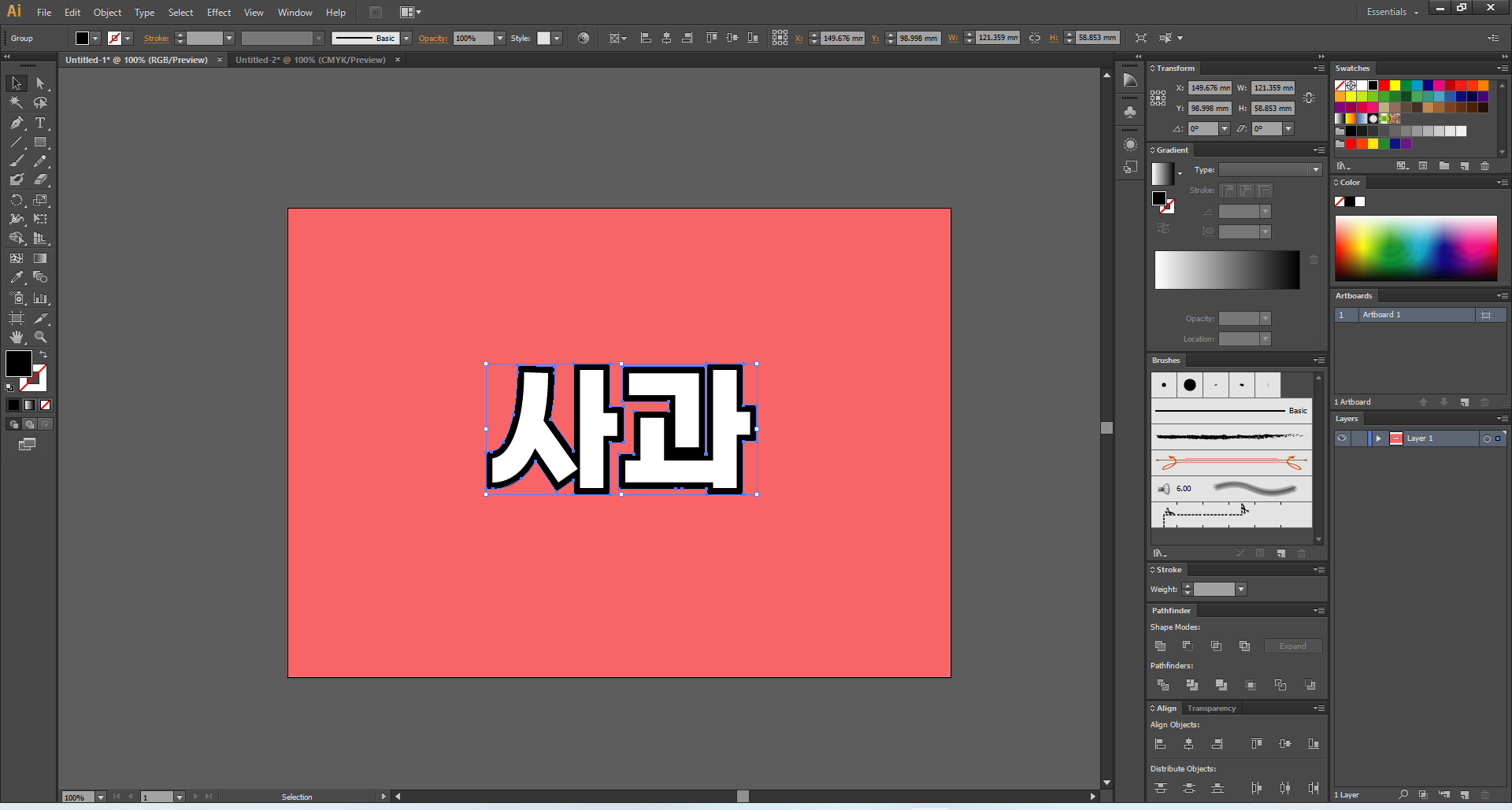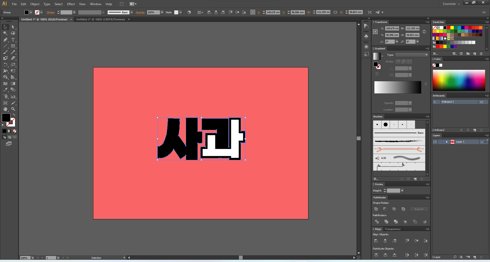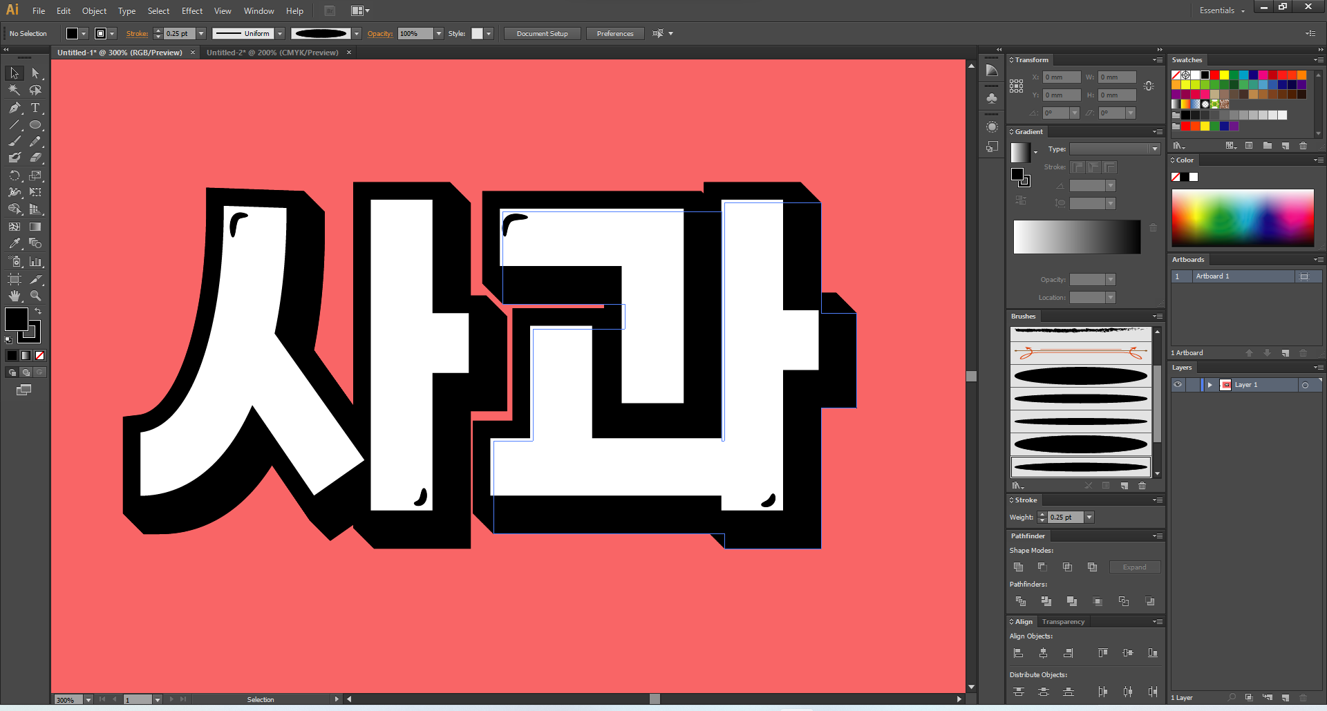 여기서 direct selection tool을 이용하셔서 글자를 조금 수정하셔도 좋아요