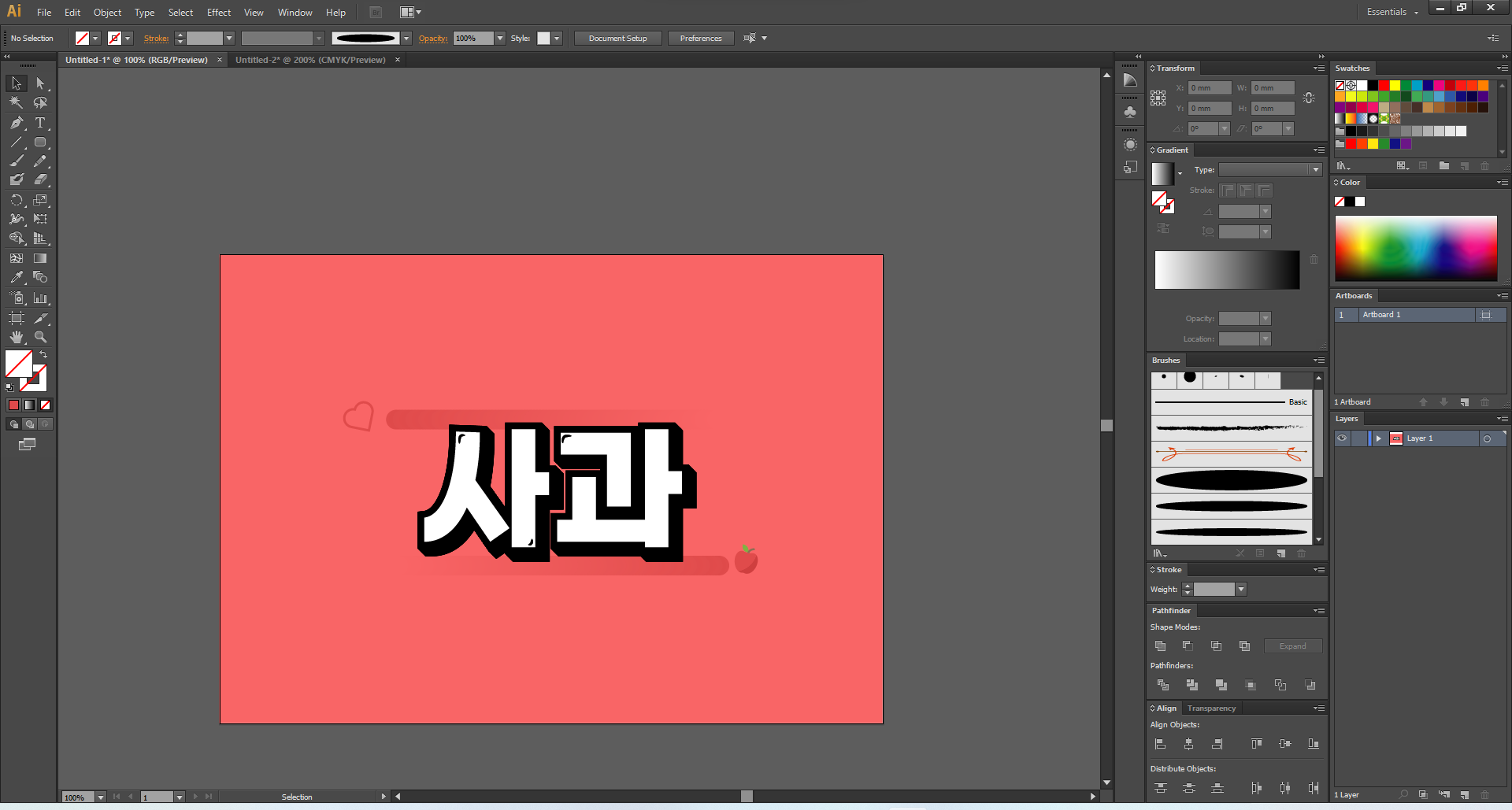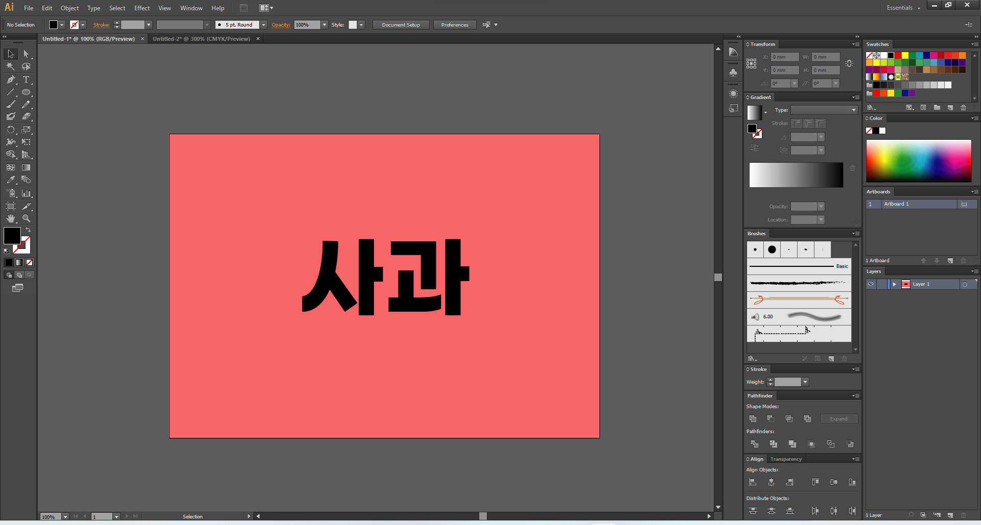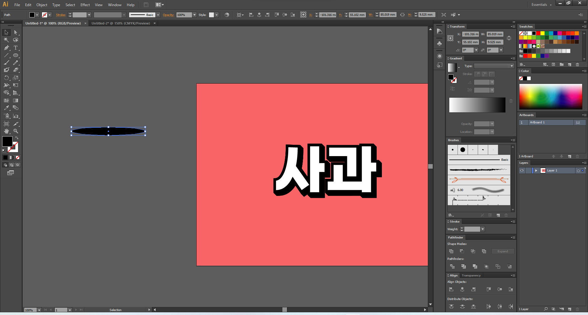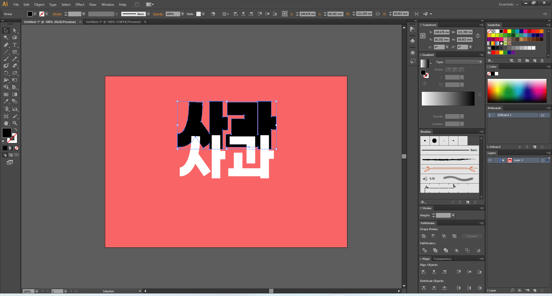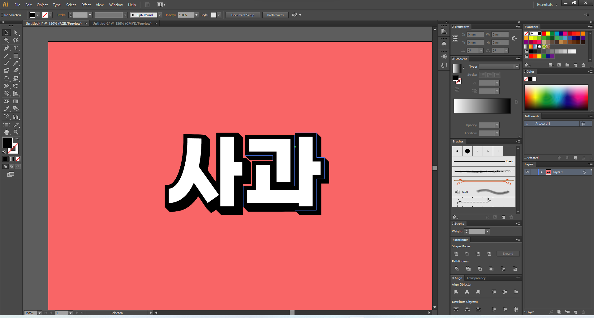 여기서 direct selection tool을 이용하셔서 글자를 조금 수정하셔도 좋아요