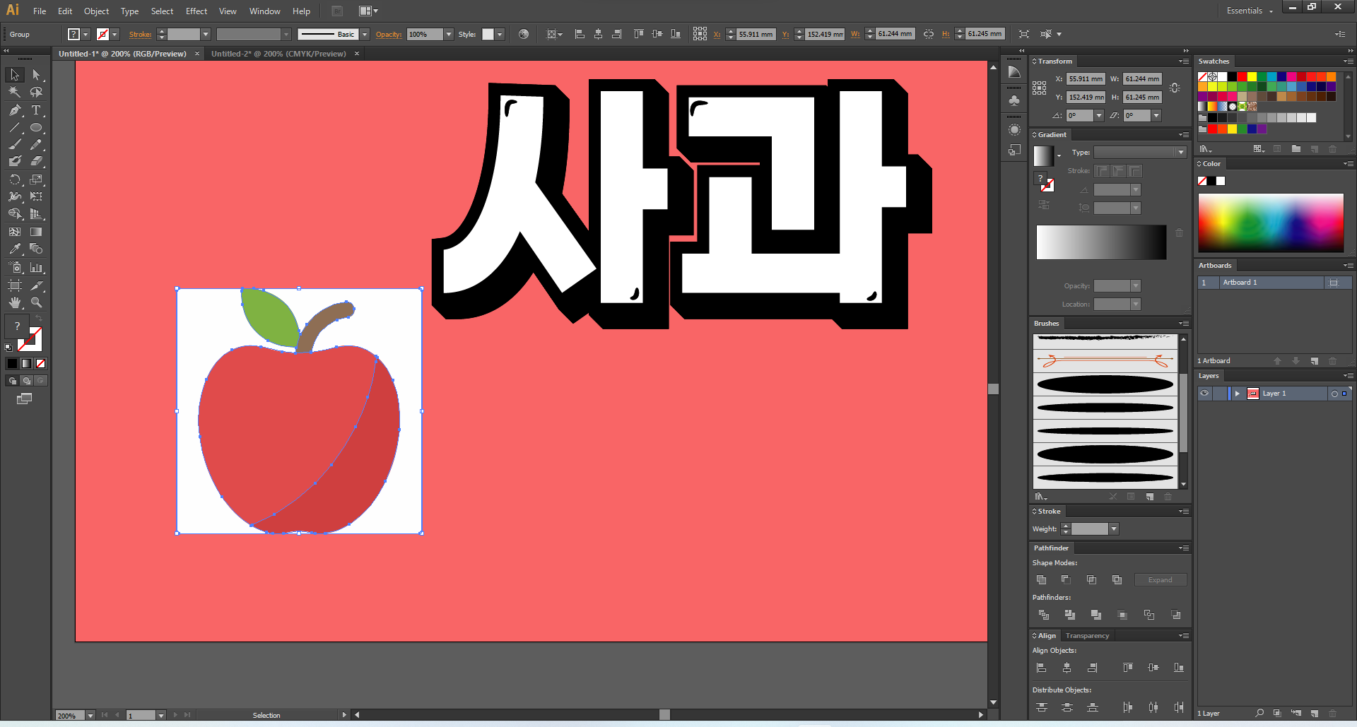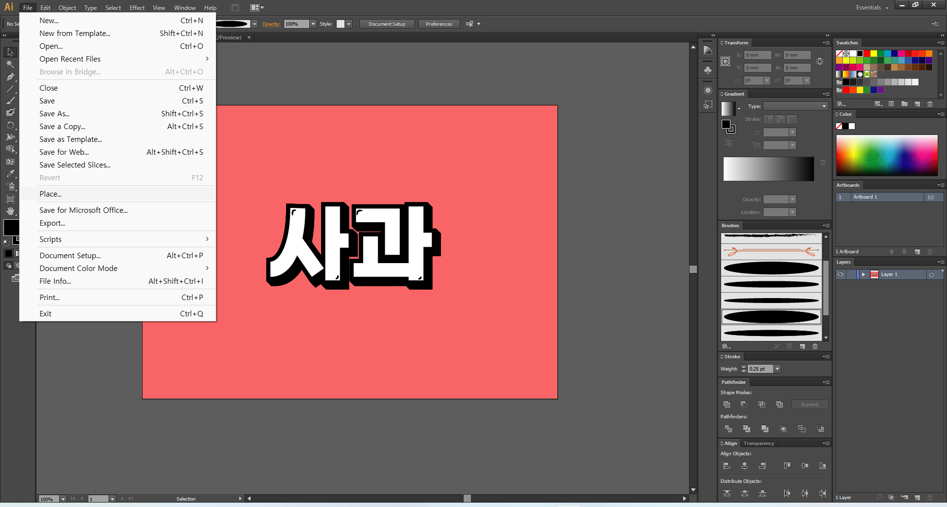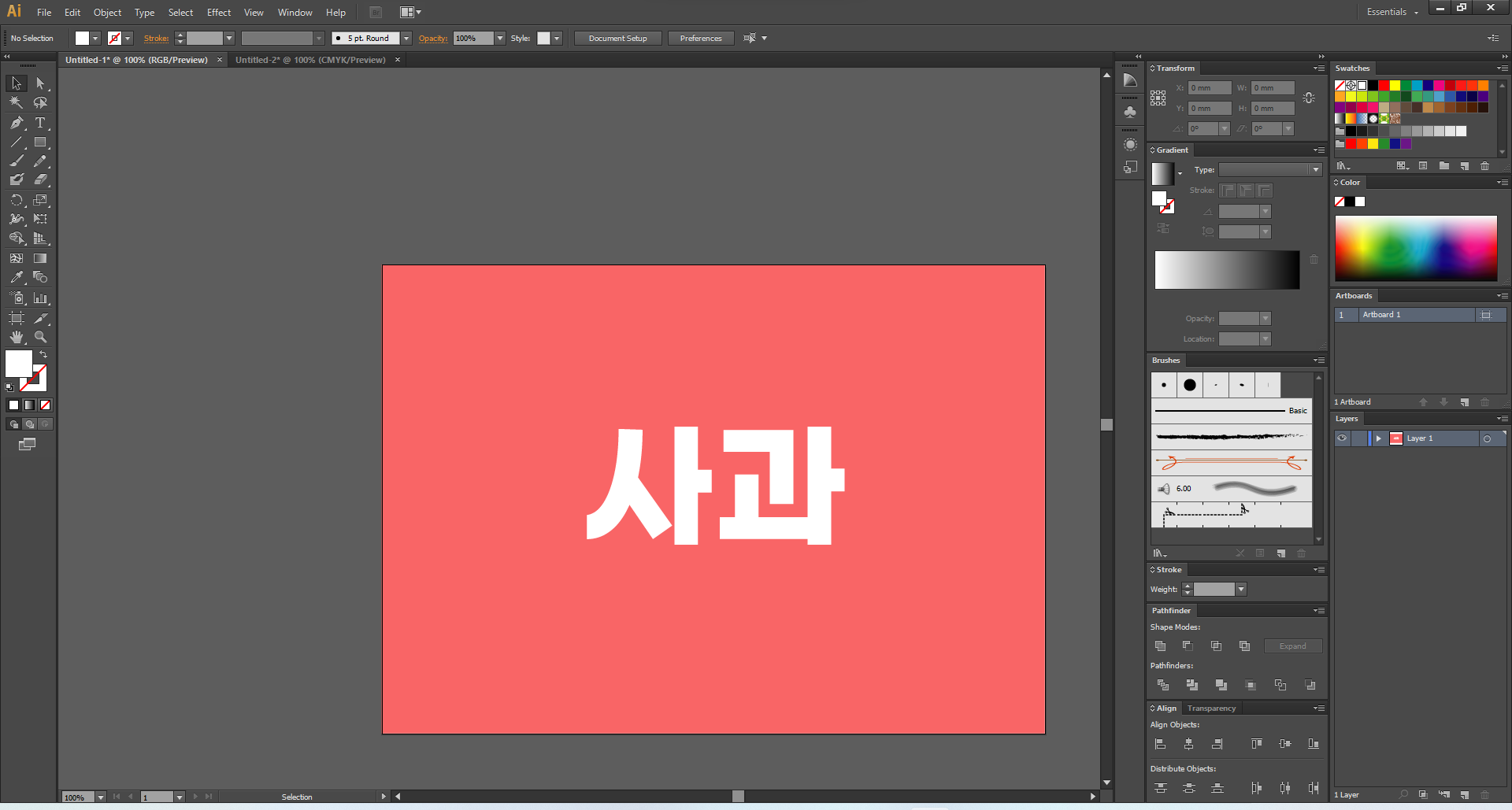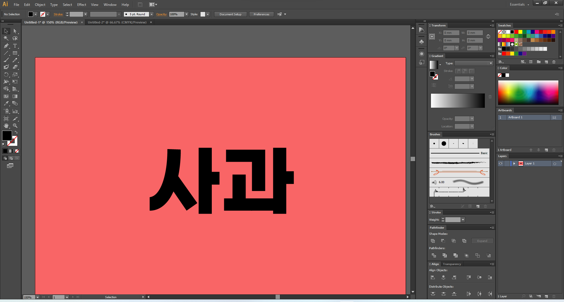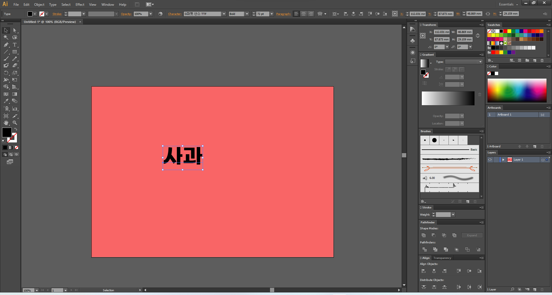 텍스트 사이즈를 적당히 늘려주고 아트보드 중앙에 정렬해주세요