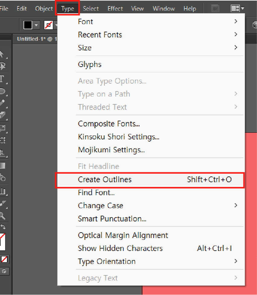 Type - Create Outlines로 아웃라인을 깨 주세요