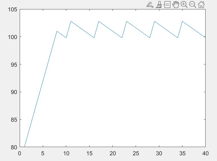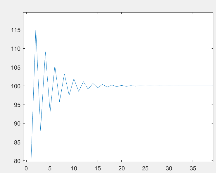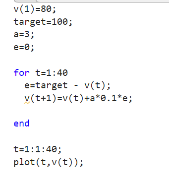 이제 이것을 매트랩으로 어떻게 구현해야 할까요? 매트랩에서는 연속함수가 아닌, 정수 t에 대해서 배열로 제어값을 설정했기 때문에 다음과 같이 코드를 짤 수 있답니다.