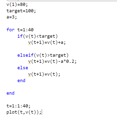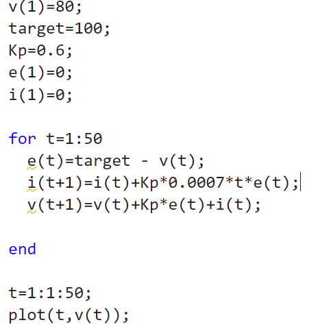 왼쪽의 간단한 매트랩 코드를 이용해서 On / Off 만으로 크루즈 컨트롤을 구현해 보았습니다.
