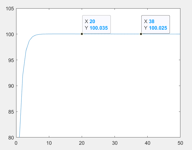 i라는 배열을 하나 더 만들고, 파라미터와 적절한 수를 오차에 곱해서 계속 더해주었어요. 일종의 적분과 비슷한 역할을 하겠죠? 오른쪽 그래프에서 보면 측정 출력(r_now)가 점점 100에 수렴하는 것을 볼 수 있습니다. 그와 더불어서, 기준입력까지 근접하는 시간인 상승시간이 확실히 줄어든 것을 볼 수 있죠. 이제 P와 I 까지 구현하게 되었네요 :)