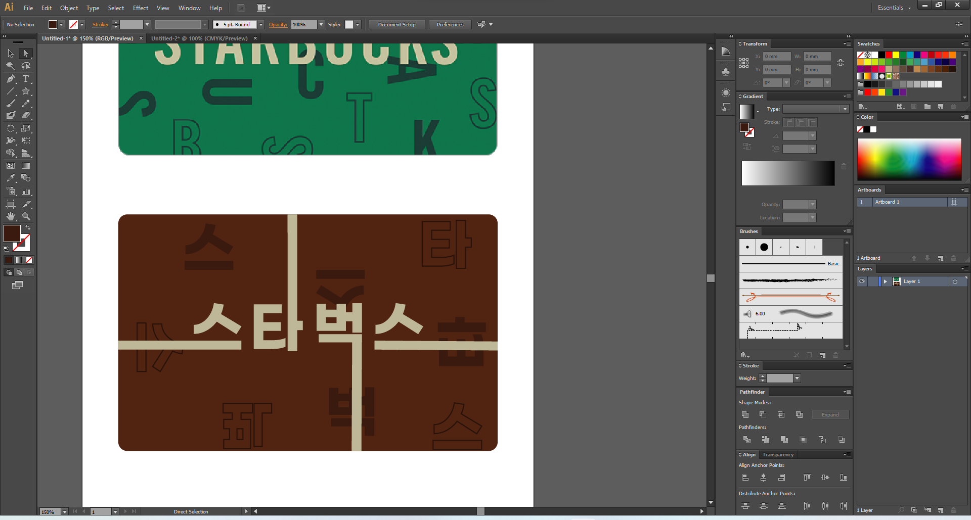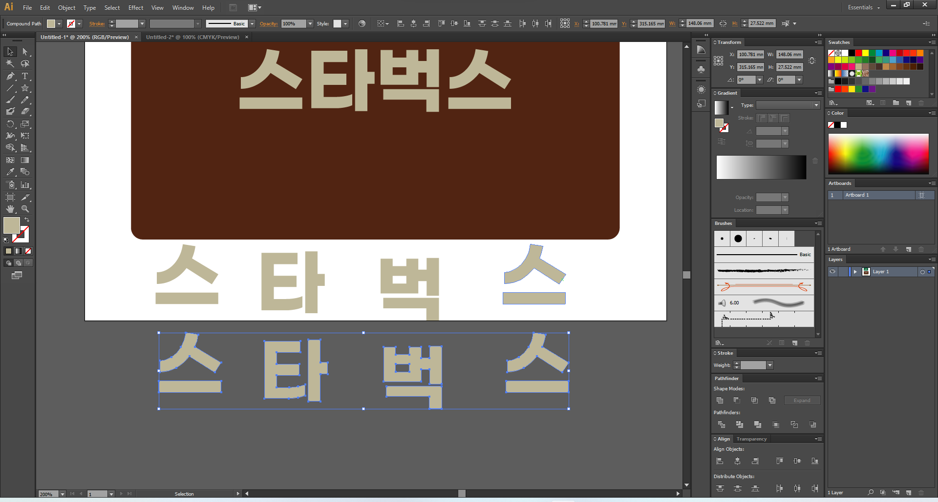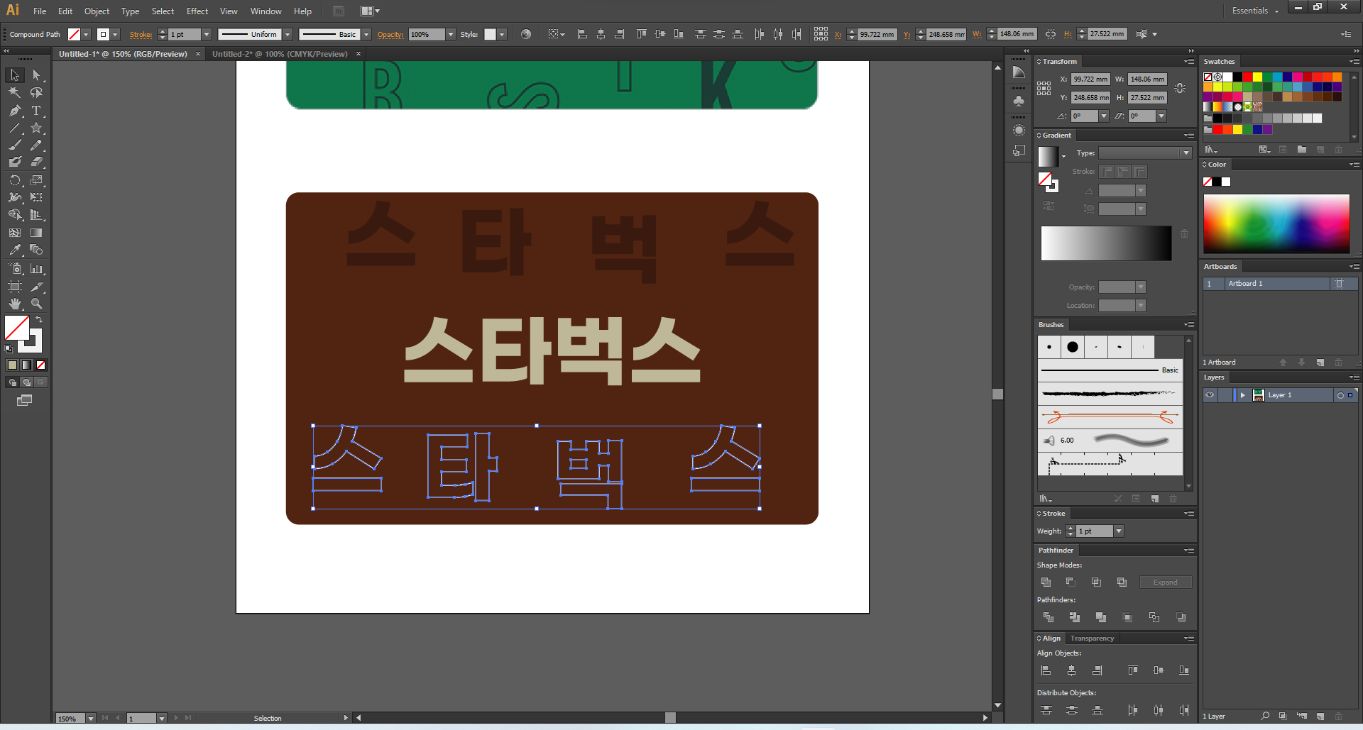 밑에 있는 스타벅스 글자를 드래그해서 색상을 검정으로 바꿔주세요.