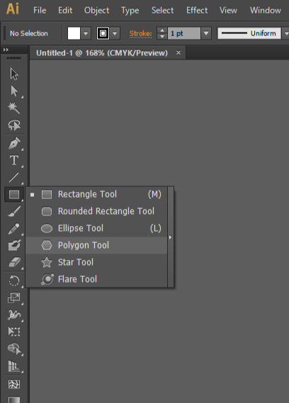 왼쪽 패널에서 Rectangle Tool에서 길게 좌클릭하면 아래에 Polygon Tool이 있습니다