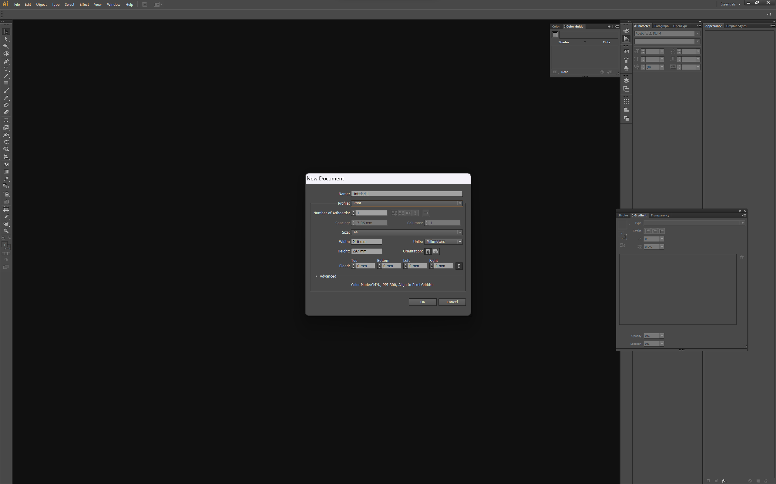우선 일러스트레이터에서 아트보드(대지)를 A4사이즈로 하나 깔아주고