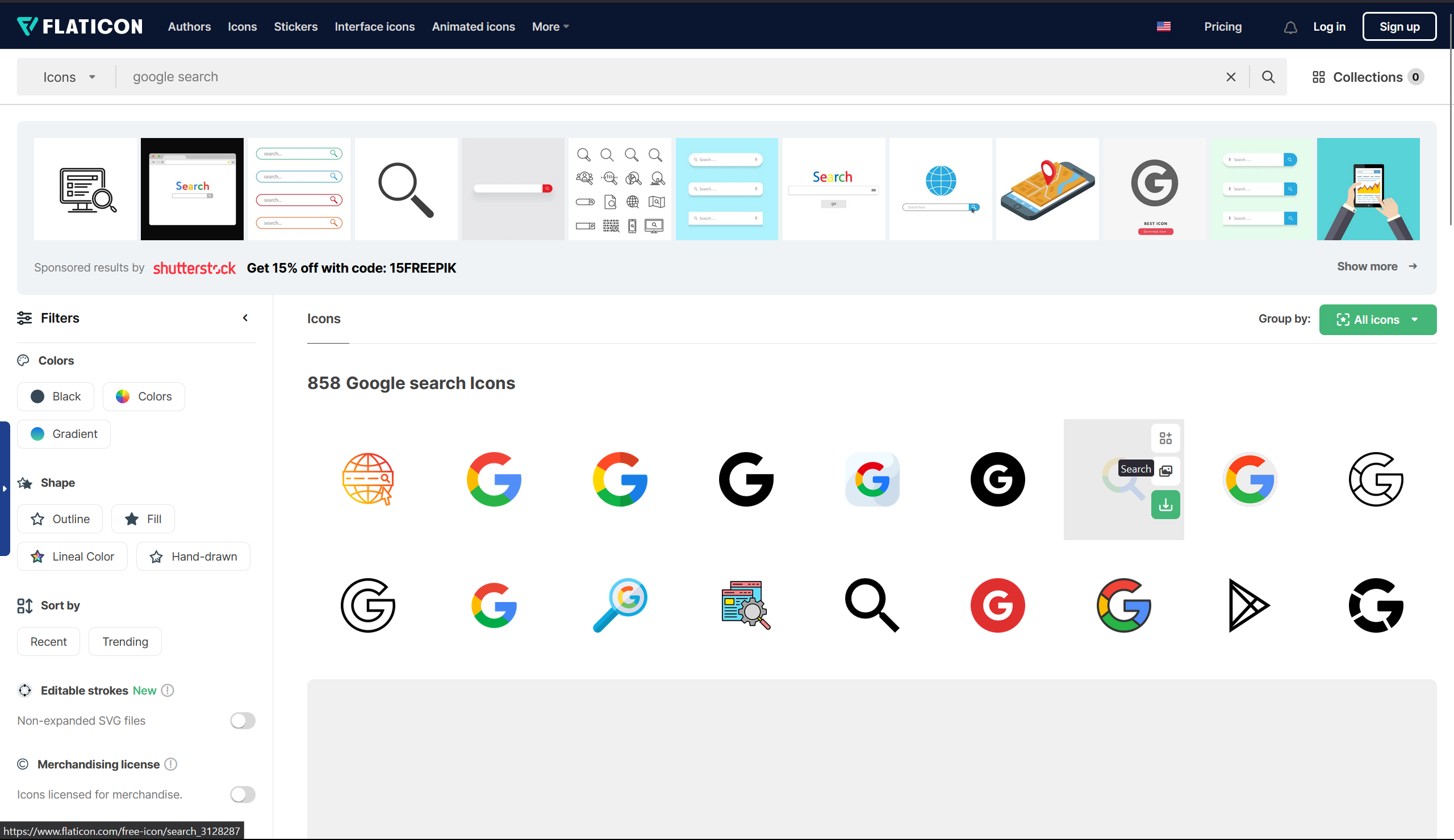 이 아이콘 사이트에서 "google search"를 검색해서 검색 아이콘을 찾았습니다.