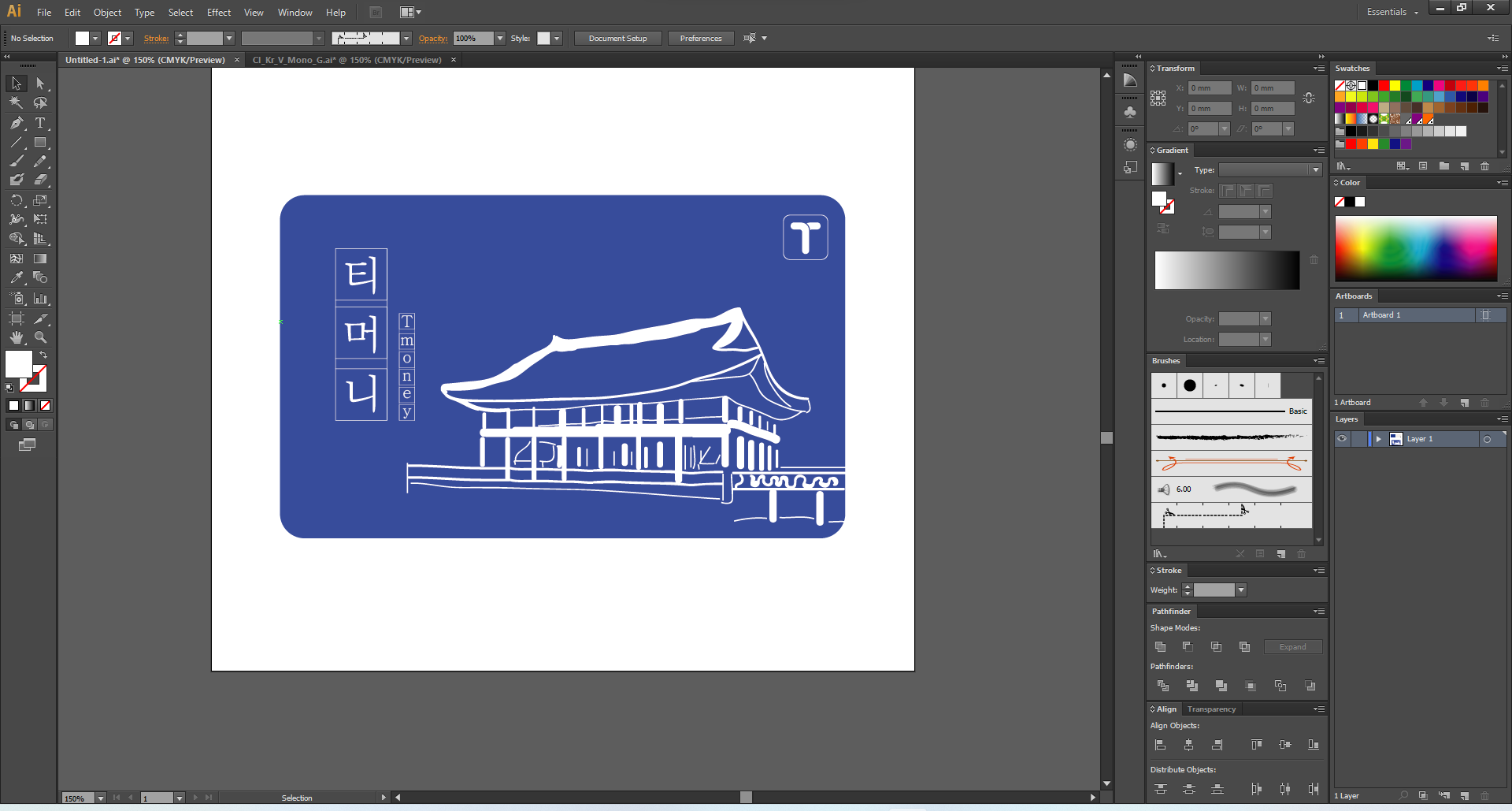 라인드로잉을 해서 한국미가 느껴지는 건물을 그렸습니다..