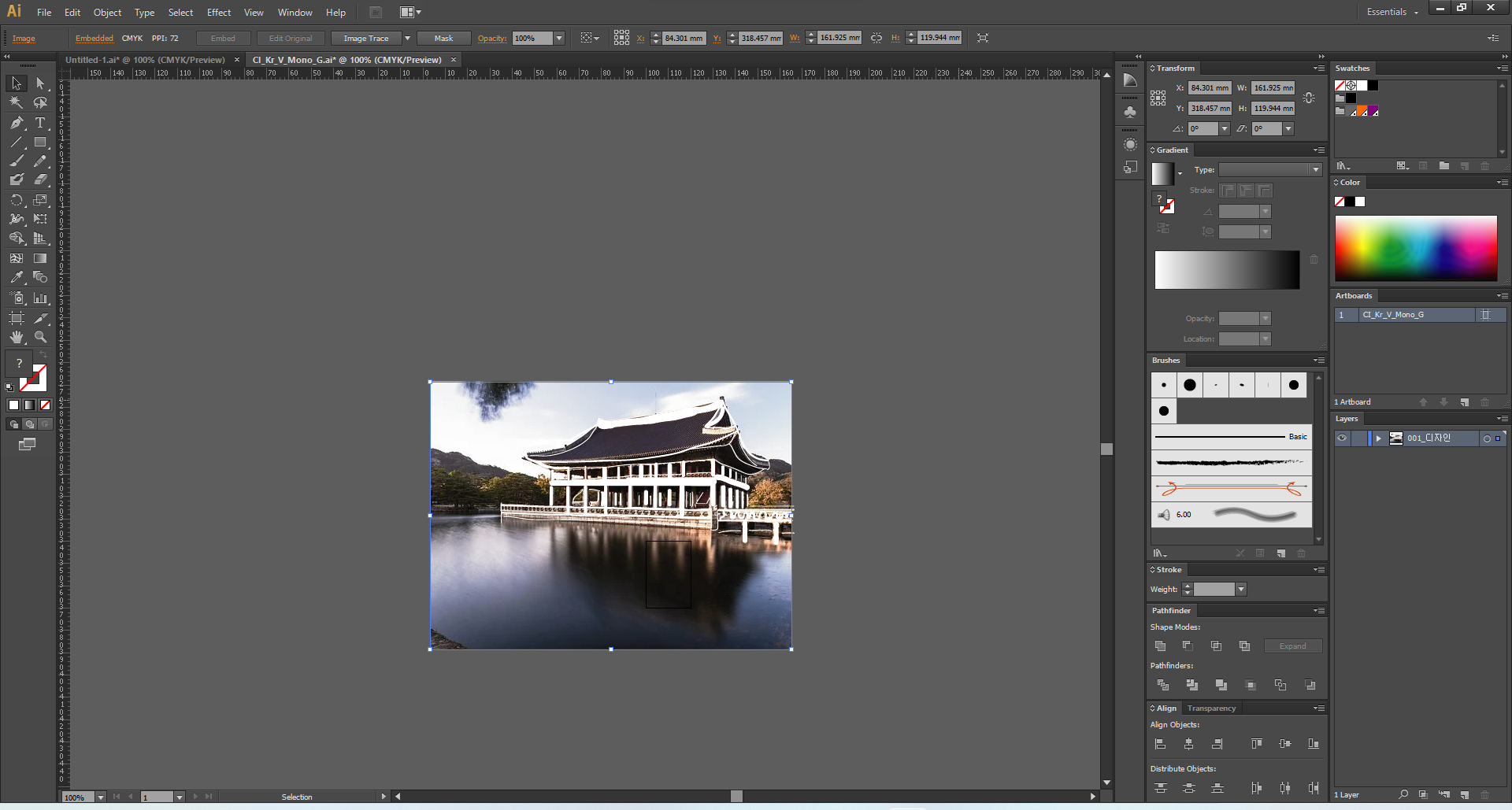 제주명조 서체로 세로로 글을 쓰고 rectangle 툴을 shift누르고 정사각형을 만들어서 틀을 만들었습니다.