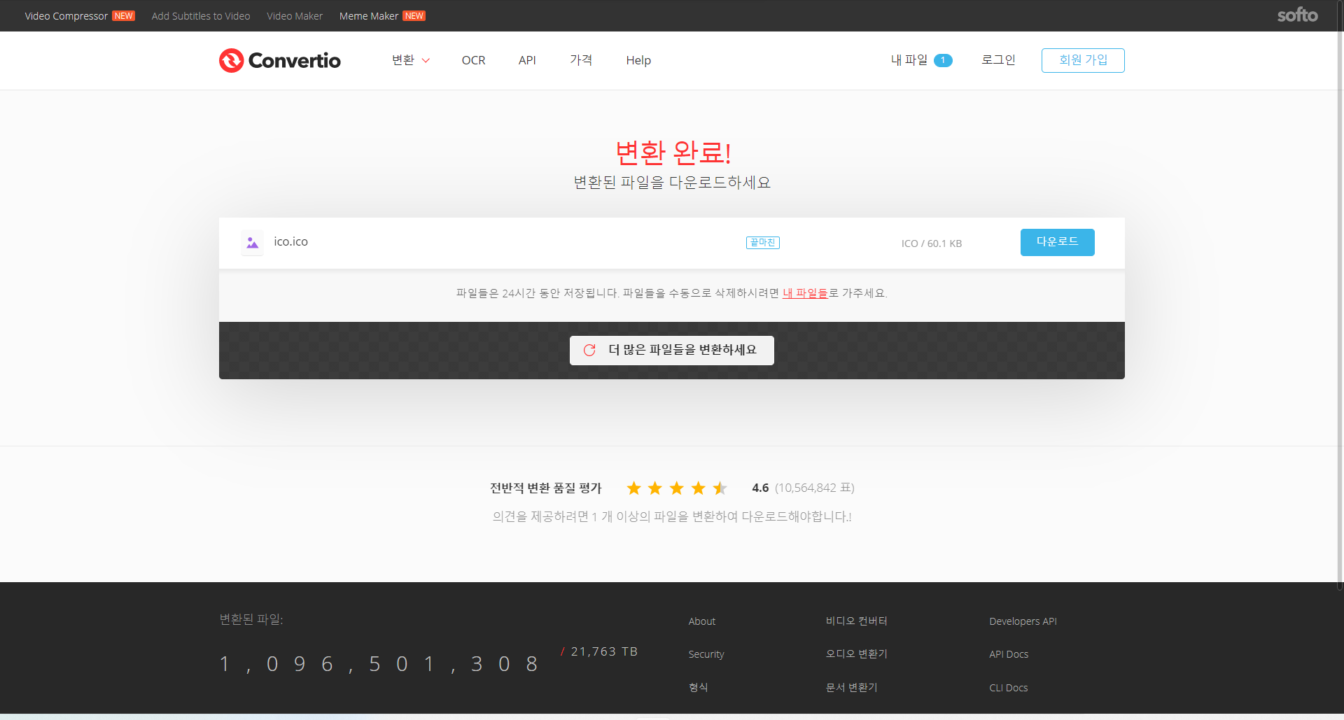 파일이 업로드가 되고 변환이 되어 ico파일을 던져줍니다.