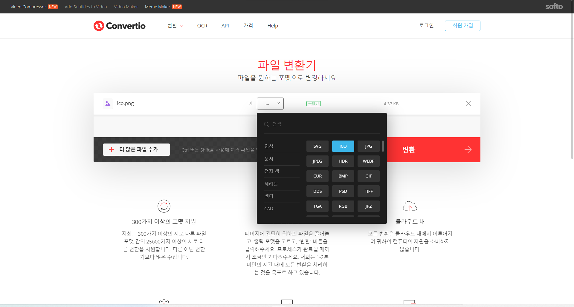 정말 많은 파일을 정말 다양한 포멧으로 변환할 수 있습니다