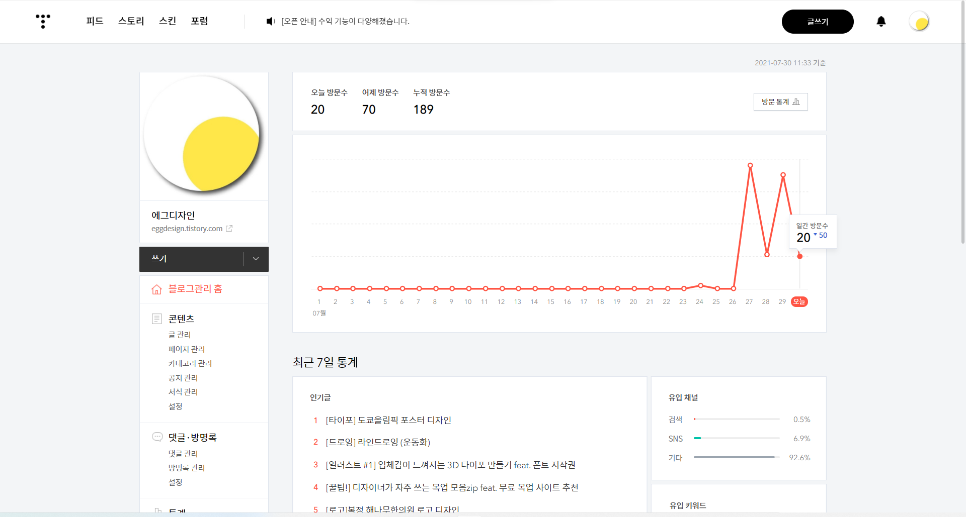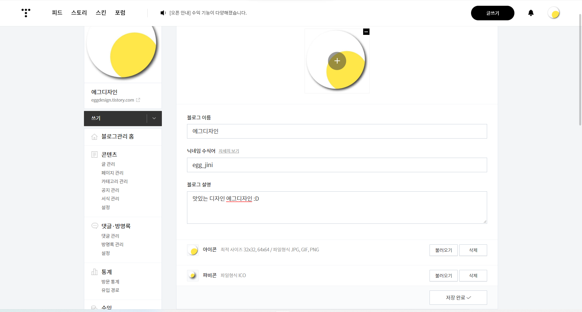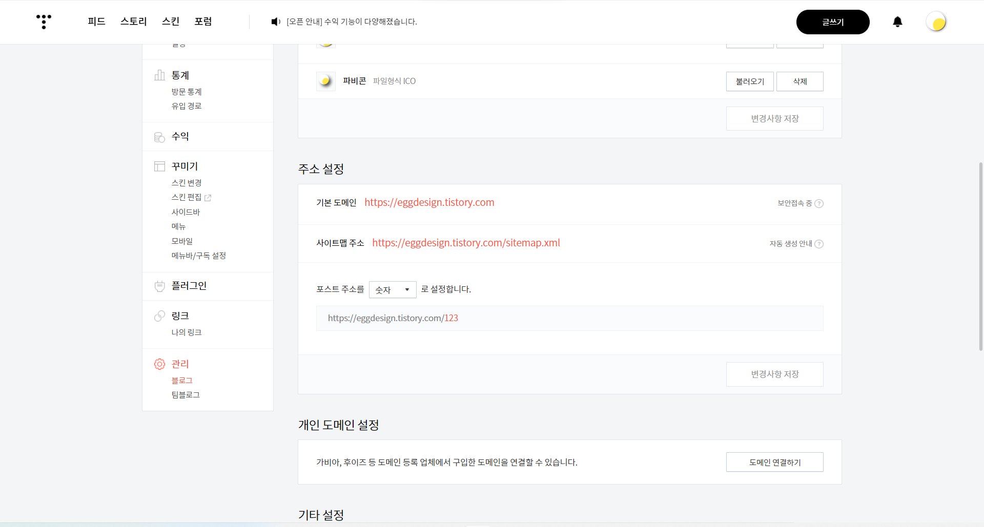 이제 티스토리에 파비콘을 적용하러 가 볼까요?