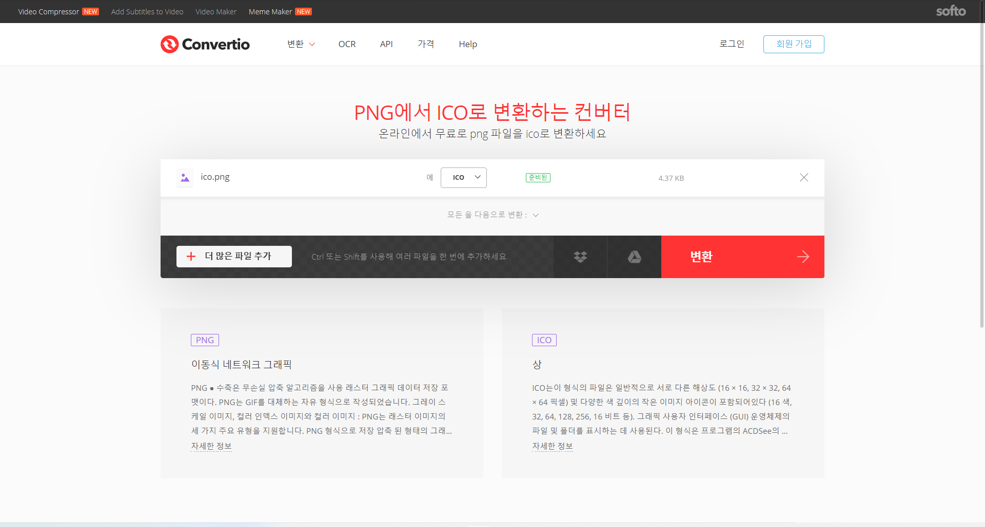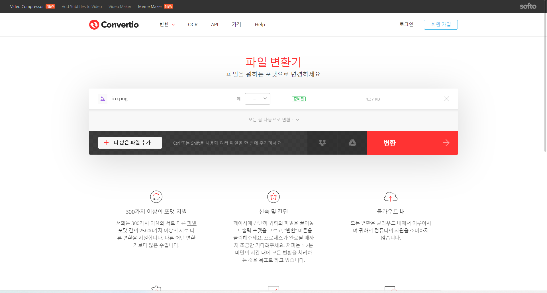 이미지나 파일의 포멧을 변환할때 사용하는 사이트입니다.