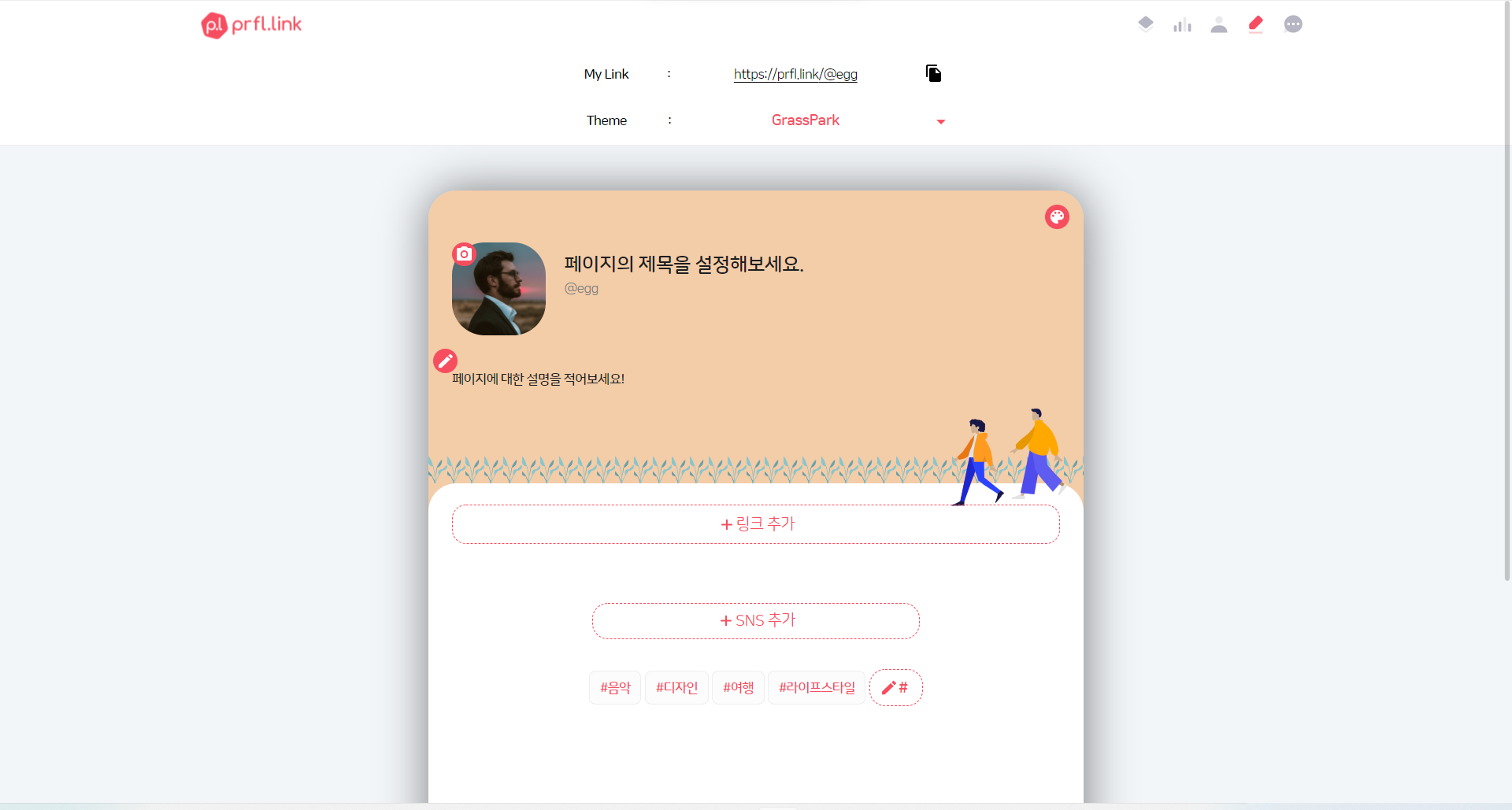 프로필 사진, 링크, SNS, 제목 등 원하시는 대로 꾸며보세요.