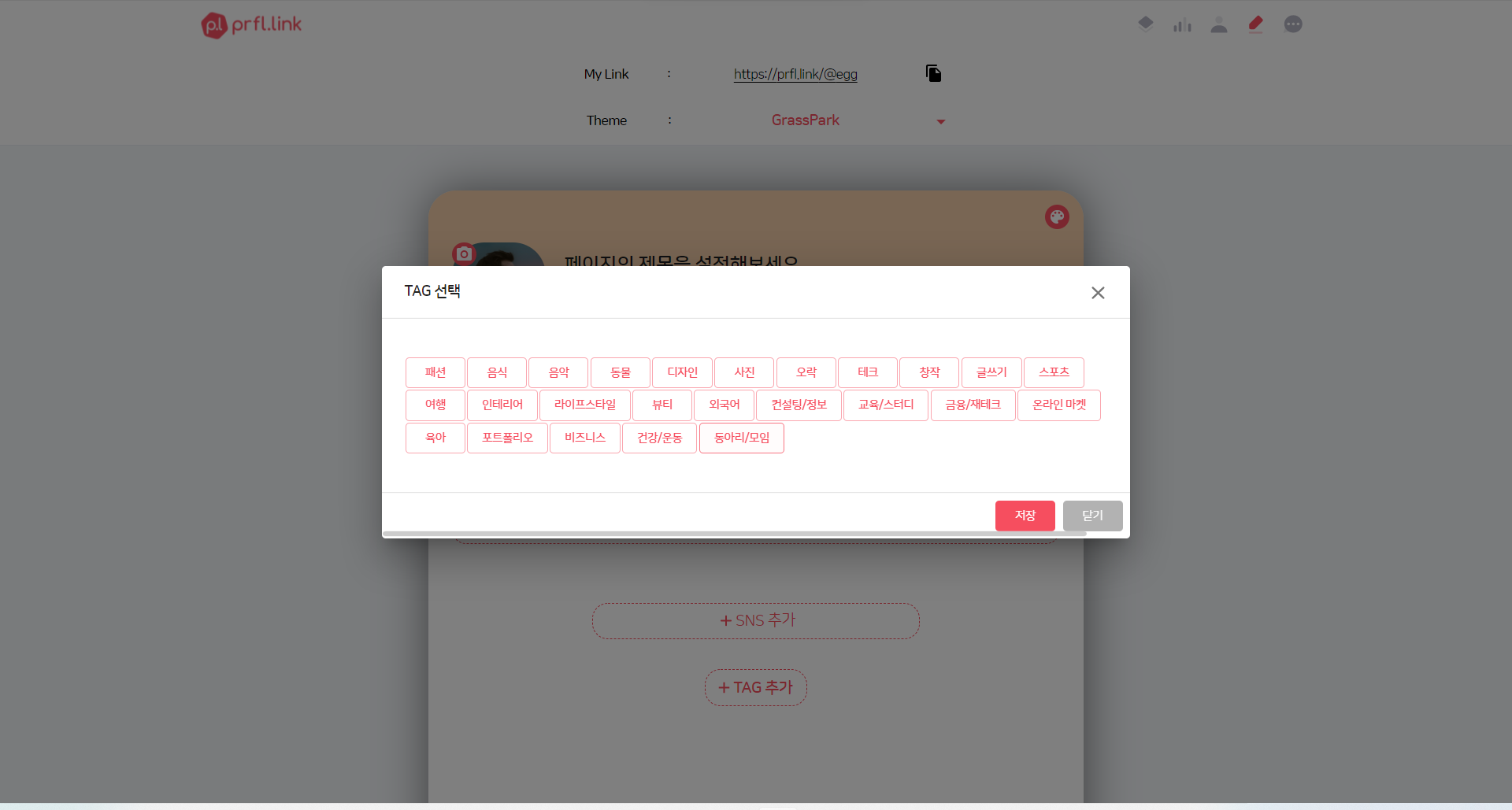 제일 윗부분에 보시면 prfl.link/@ 아이디라는 부분이 보이실 겁니다.