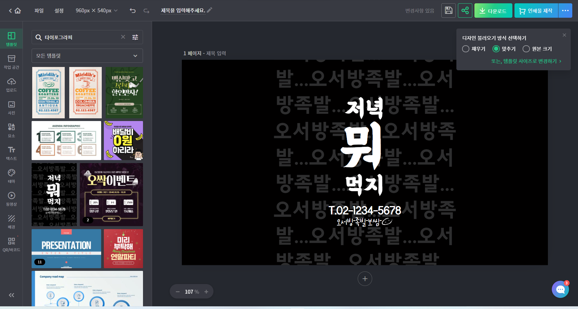 저는 이 템플릿으로 한번 만들어 볼께요. 오서방족발 광고 같은데 살짝만 수정해서 저장해 보도록 하겠습니다.