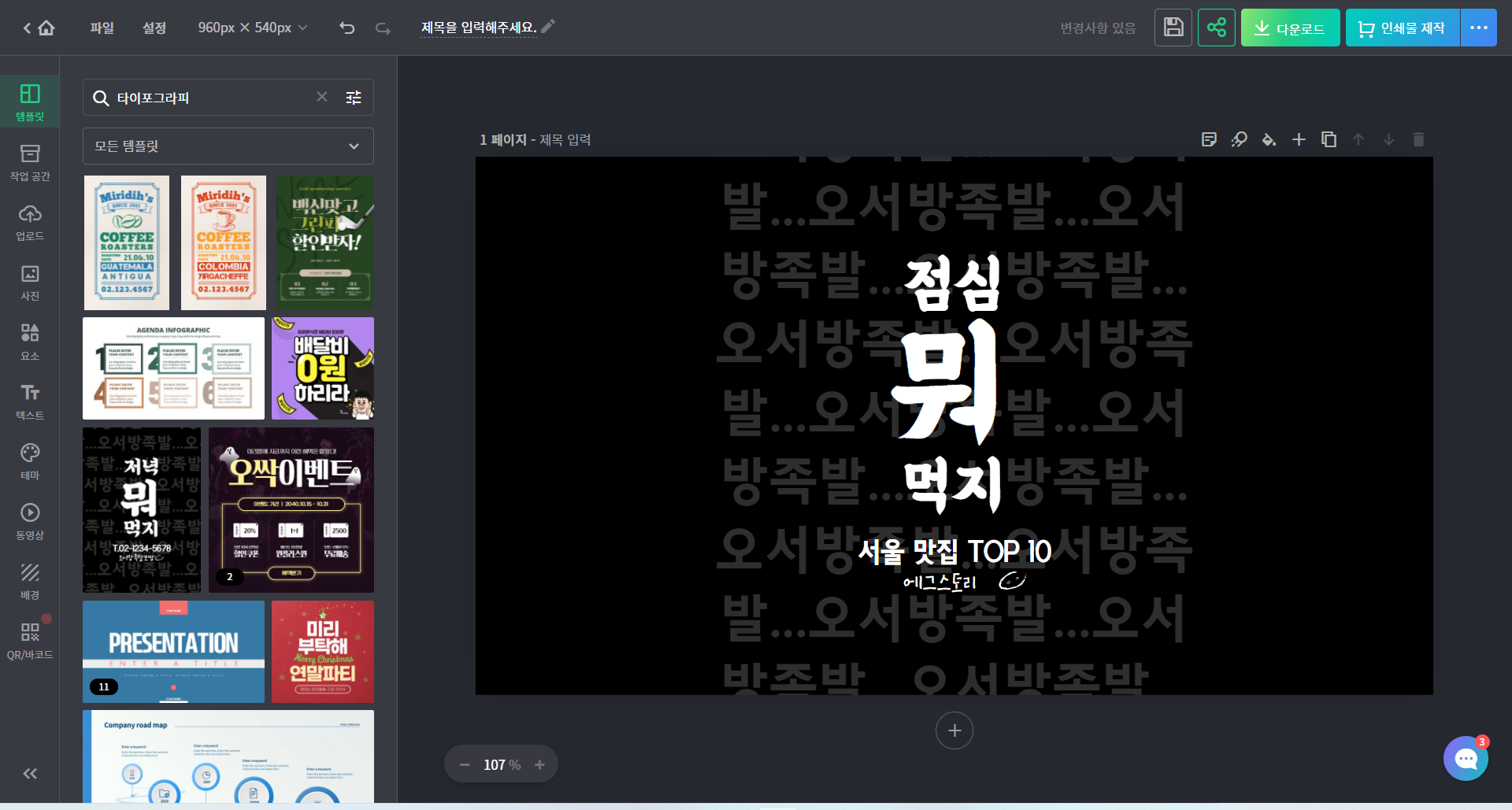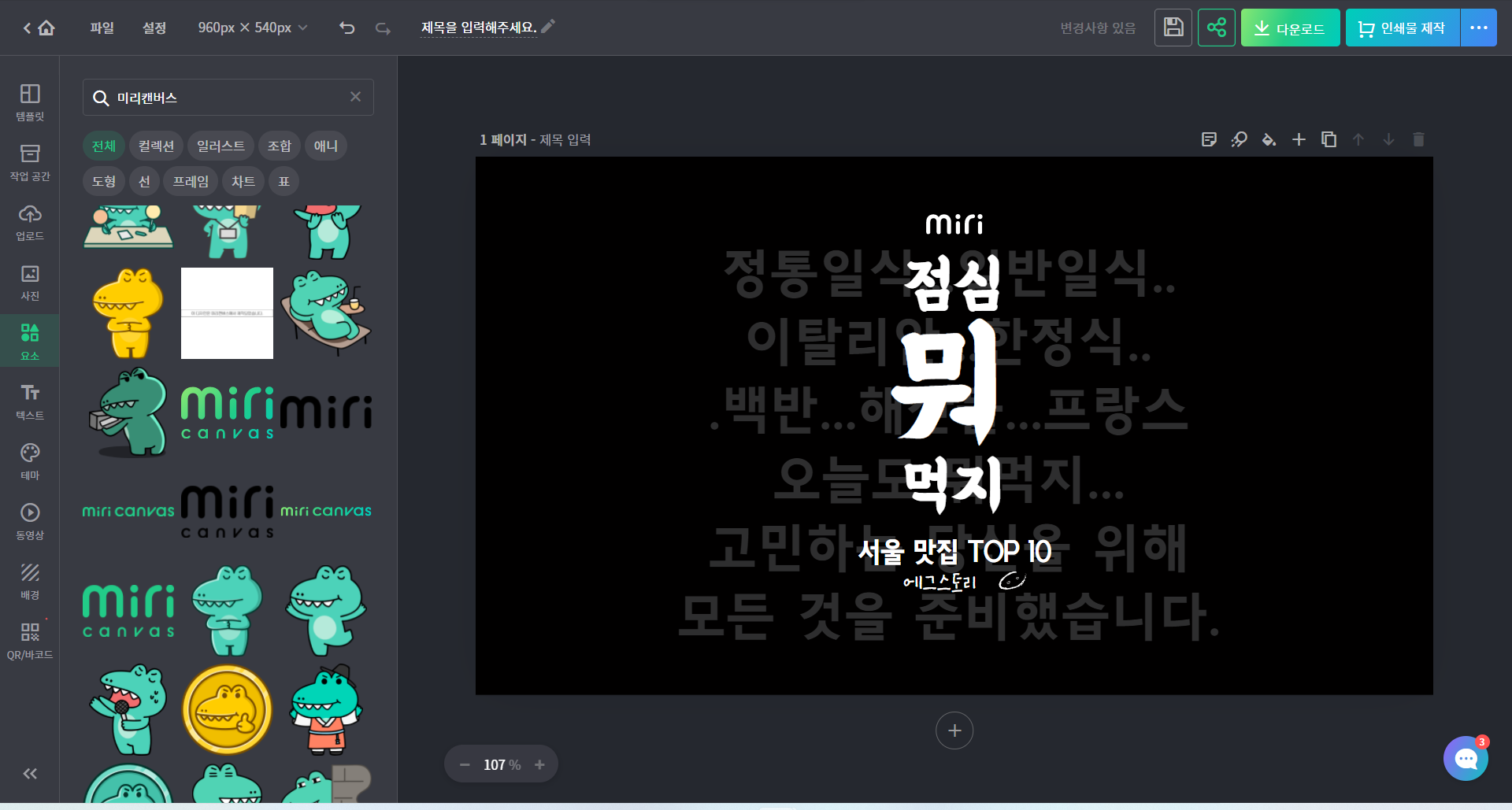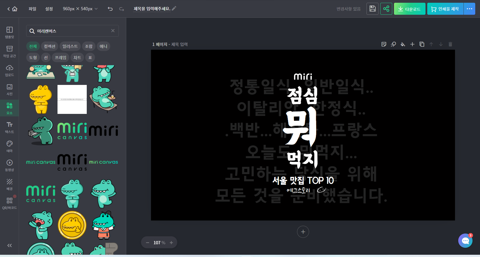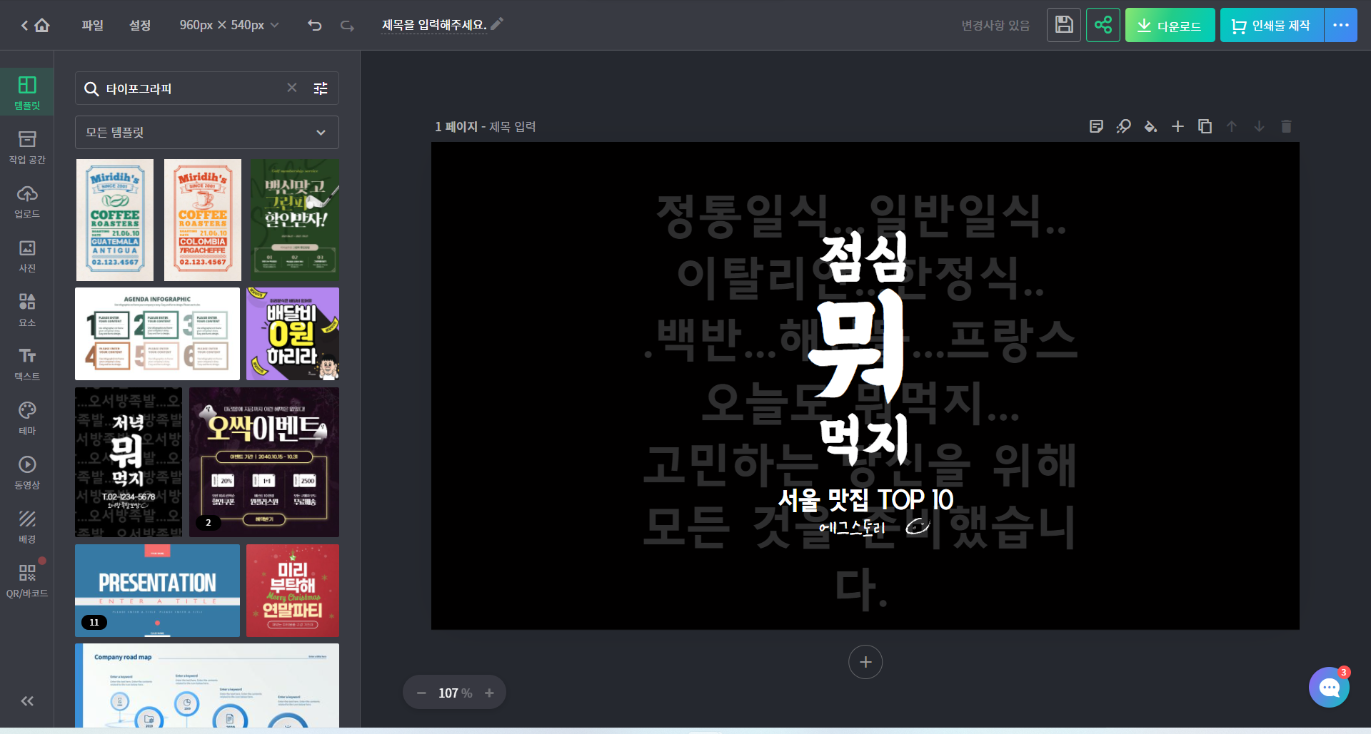 저는 이번에 작성하고 있는 서울 맛집 추천 TOP10의 썸네일을 만들어 보도록 하겠습니다.