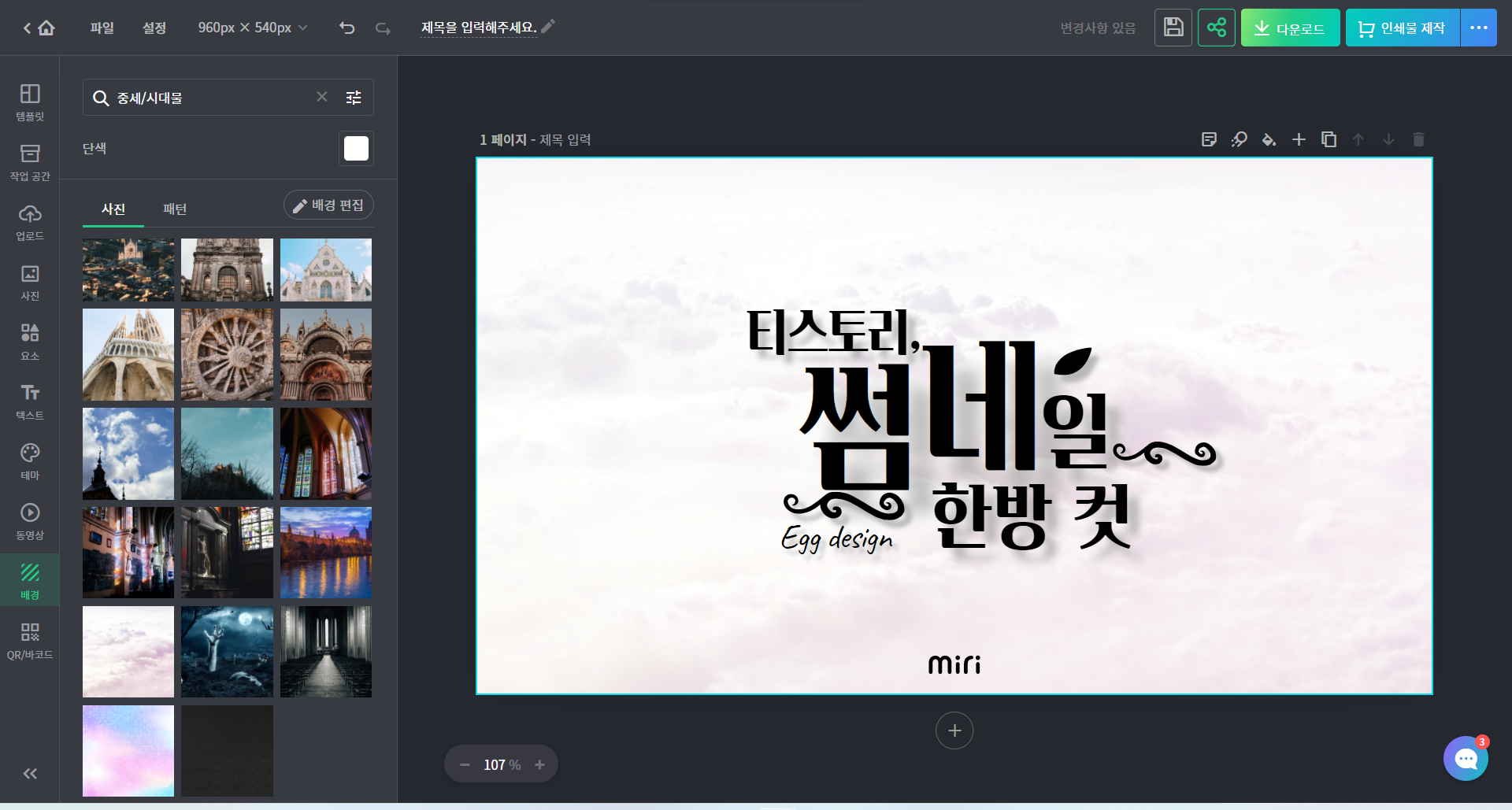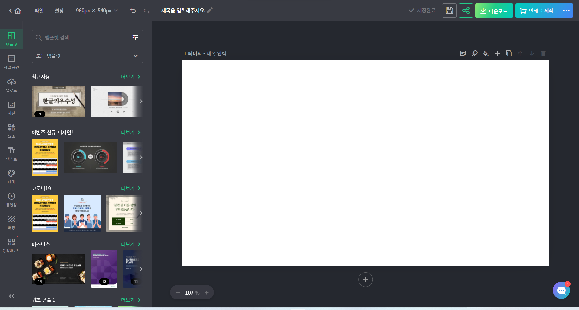 새 디자인 만들기를 눌러서 블로그 썸네일 사이즈 (960*540) 사이즈로 디자인을 만들어 볼께요.