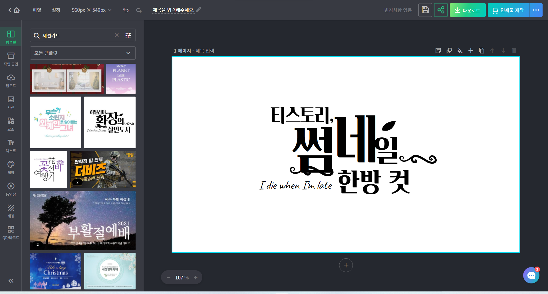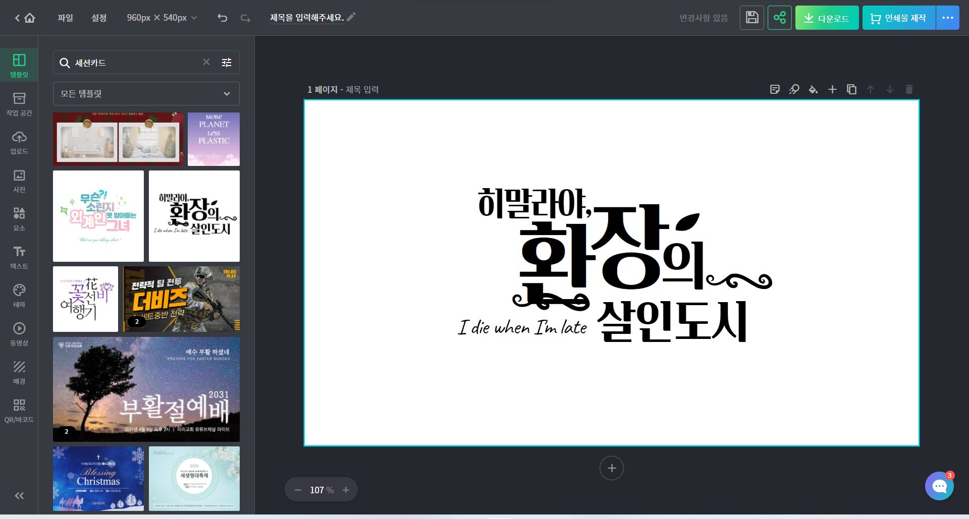 템플릿에서 원하는 키워드를 이용해서 검색하거나 직접 사진, 요소, 텍스트 등을 넣어서 처음부터 만드셔도 됩니다.