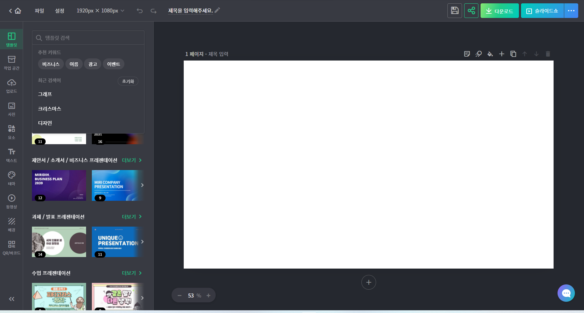 ppt, 카드뉴스, 포스터, 유튜브 섬네일 등 5만개 이상의 무료 템플릿으로 원하는 디자인 제작