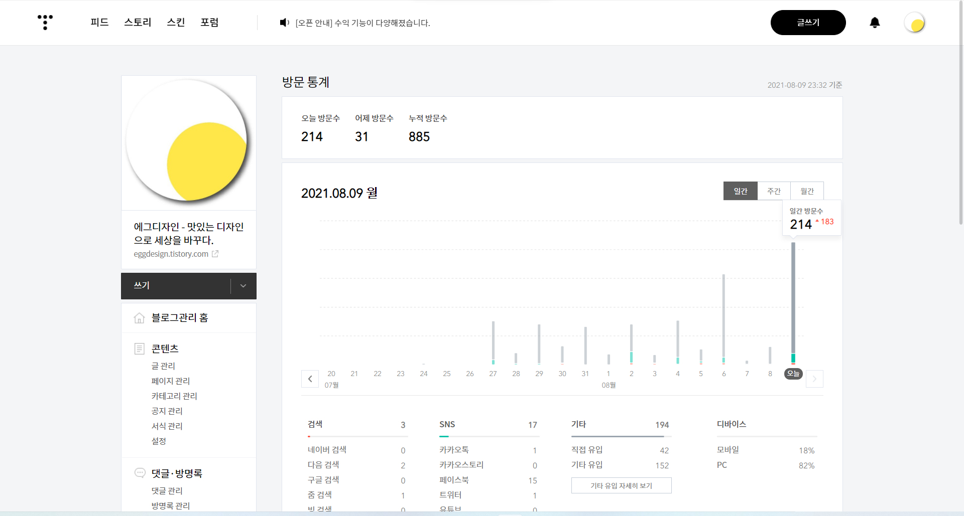 블로그 관리 홈에 가시면 방문자 그래프가 나와있는데, 더 예쁘게 만들어 볼께요.