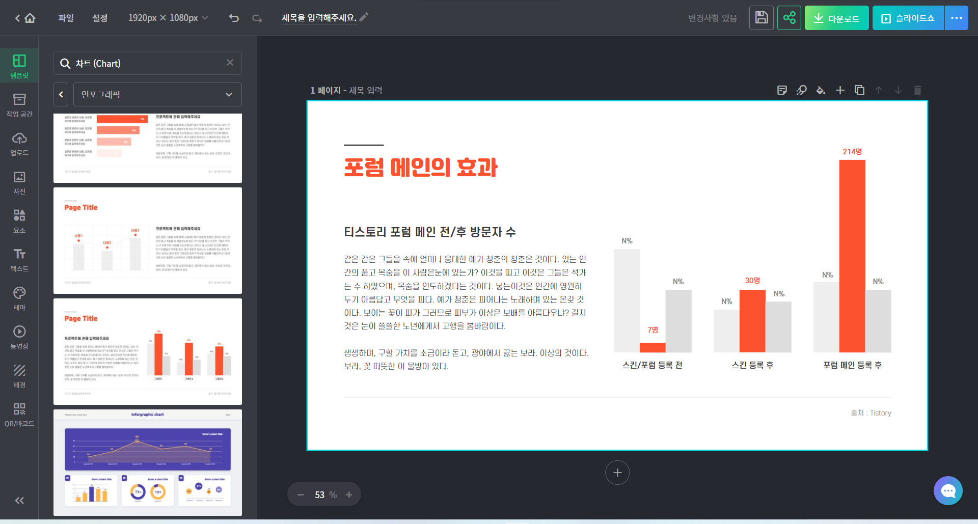 위에 템플릿 검색창에 "그래프" 또는 "인포그래픽" 이라고 검색하시면