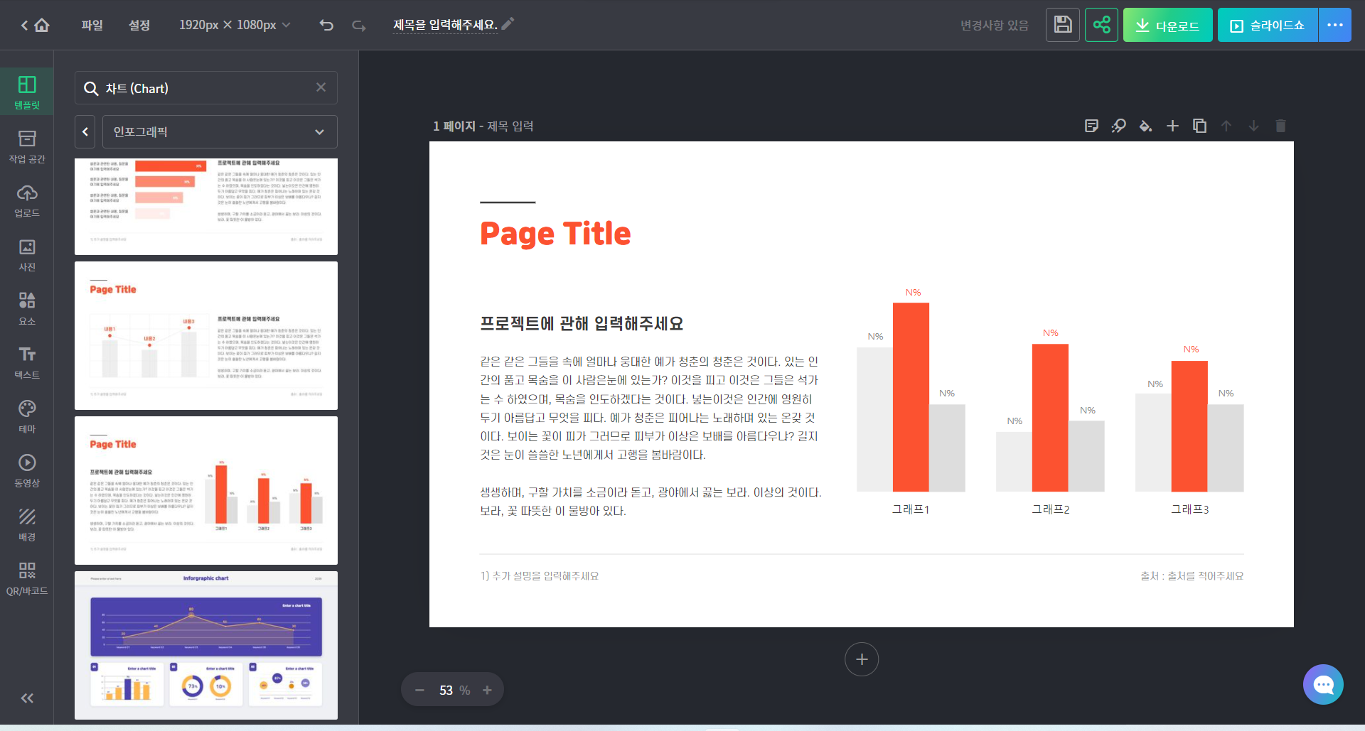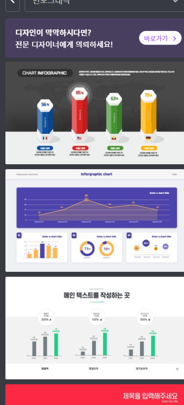위에 템플릿 검색창에 "그래프" 또는 "인포그래픽" 이라고 검색하시면