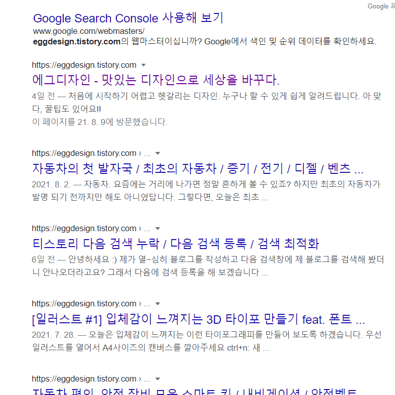 저는 다행히도 검색등록을 해 둔 덕에 한글로 "에그디자인"이라고 검색해도 나옵니다.
