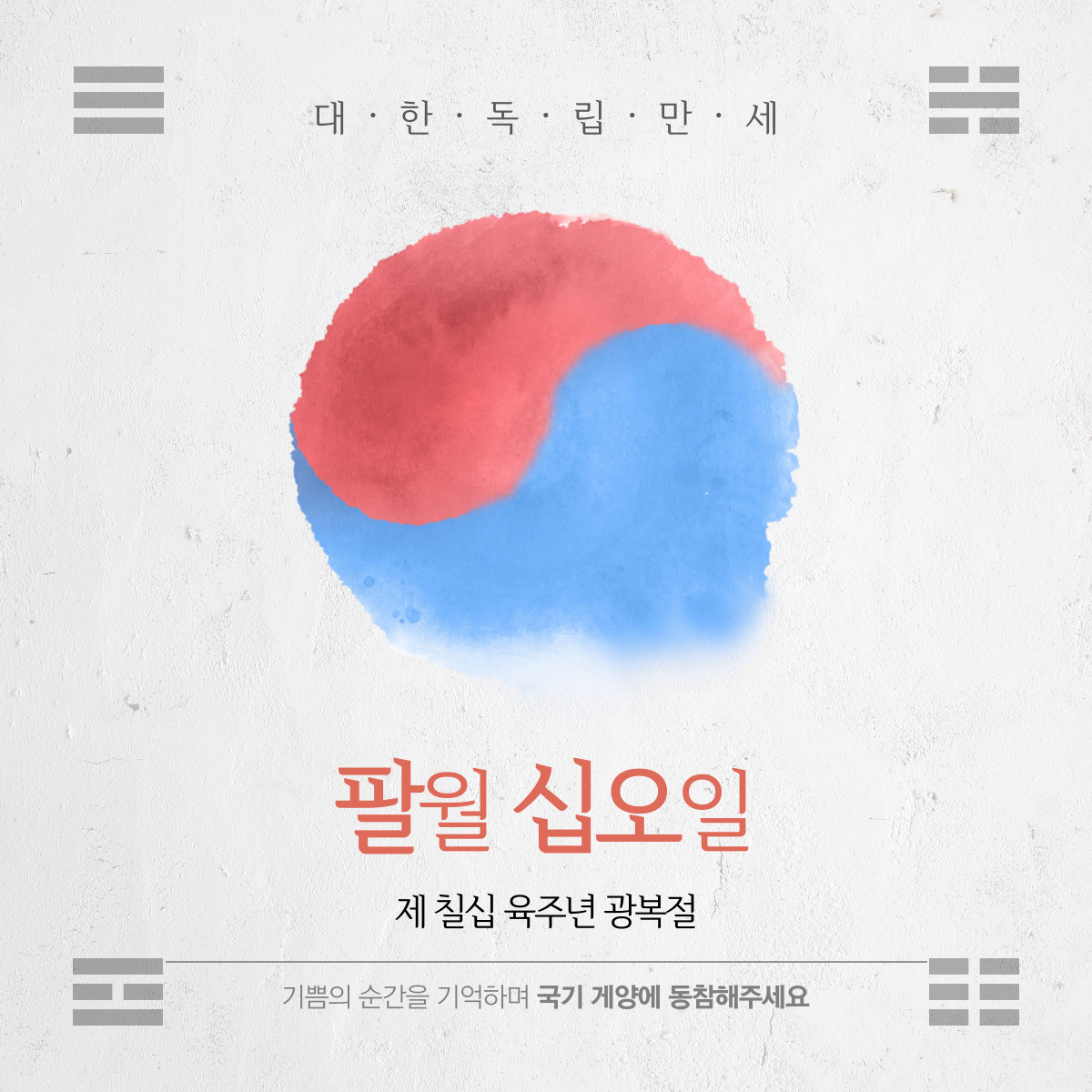 광복절에는 국기를 달아 경축해 주시기 바랍니다. :)