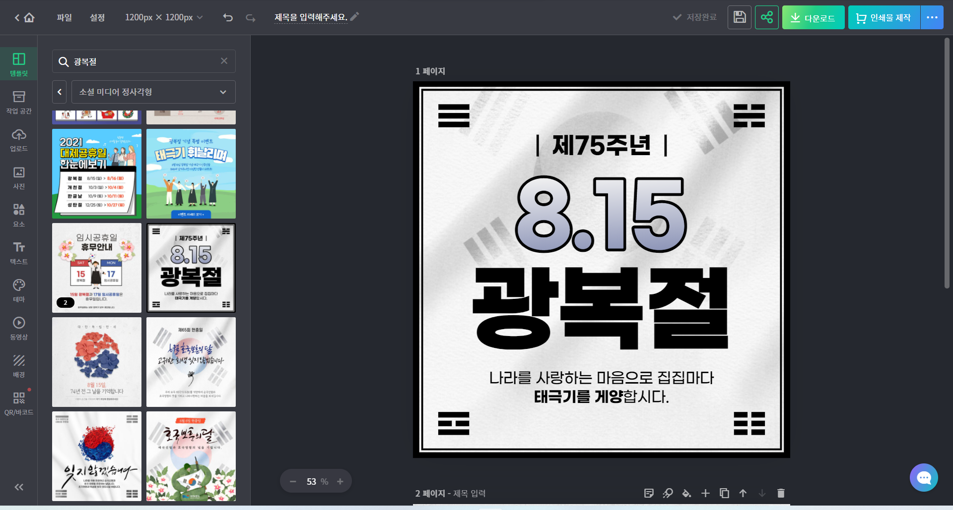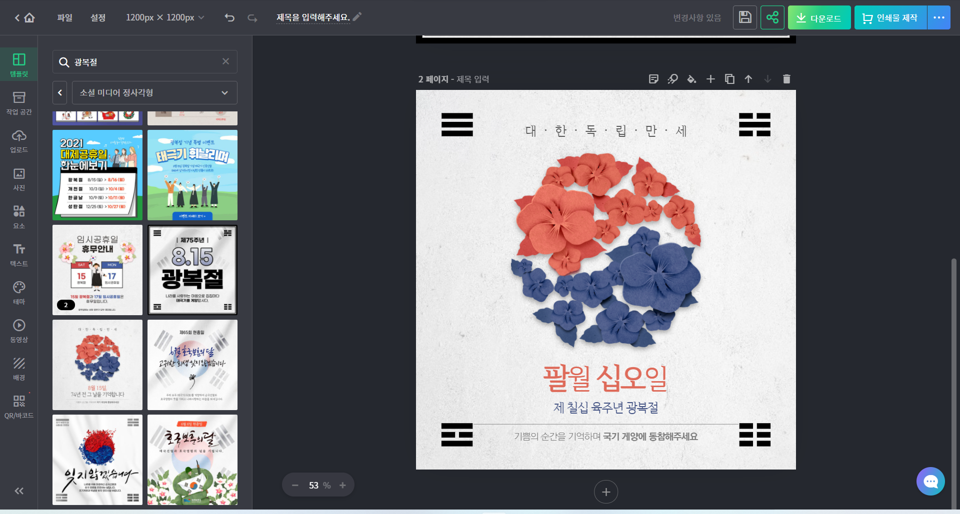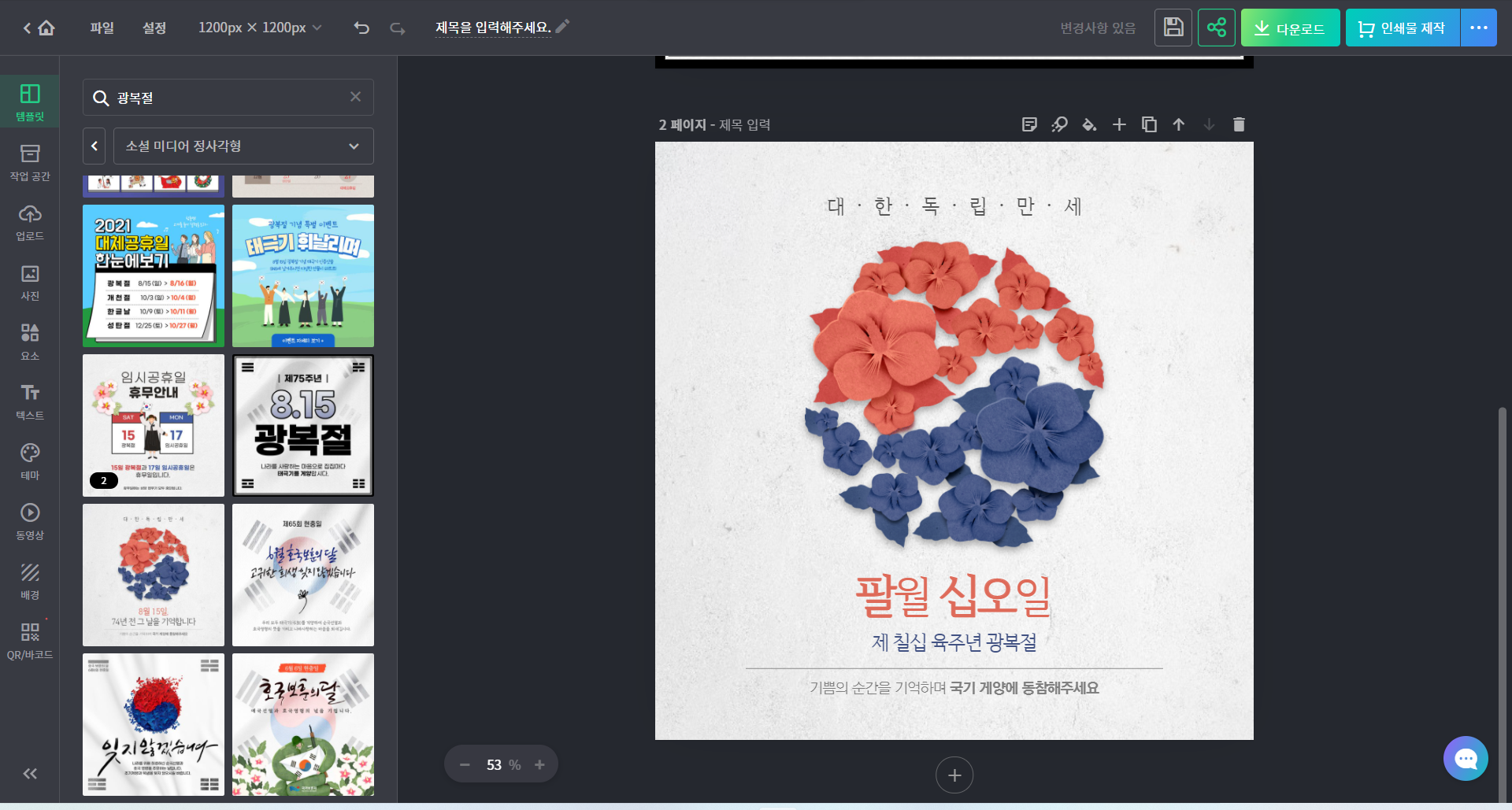 광복절이라고 검색하면 이미 수많은 템플릿들이 있습니다.