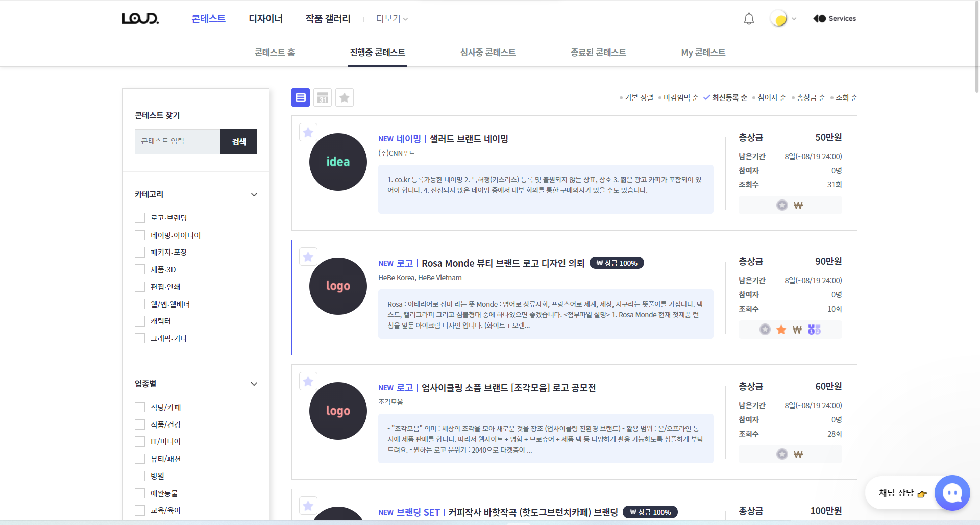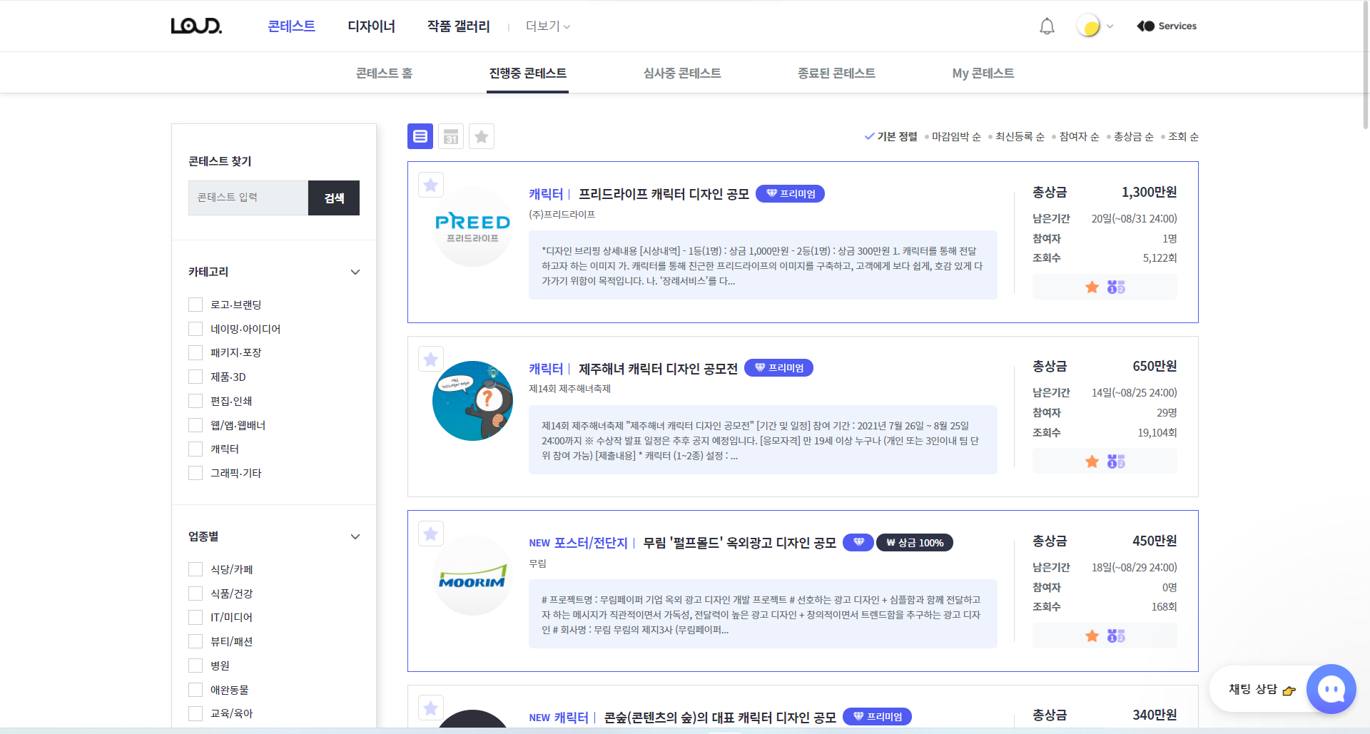 로고나 상세페이지, 패키지 디자인, 네이밍 등 다양한 공모전을 개최하고, 참여할 수 있습니다.