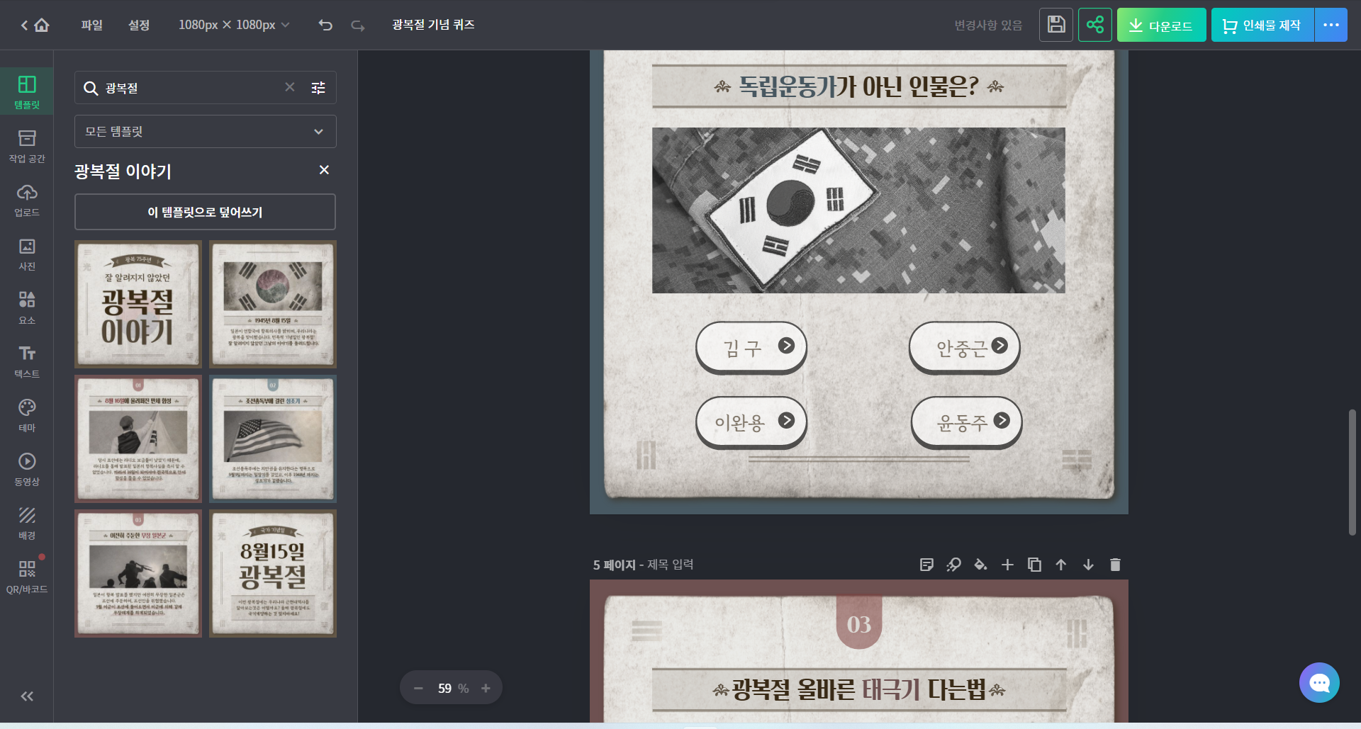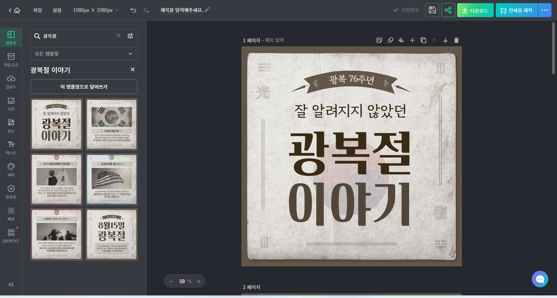 우선, 광복절 느낌이 나는 템플릿을 불러 오도록 합시다.