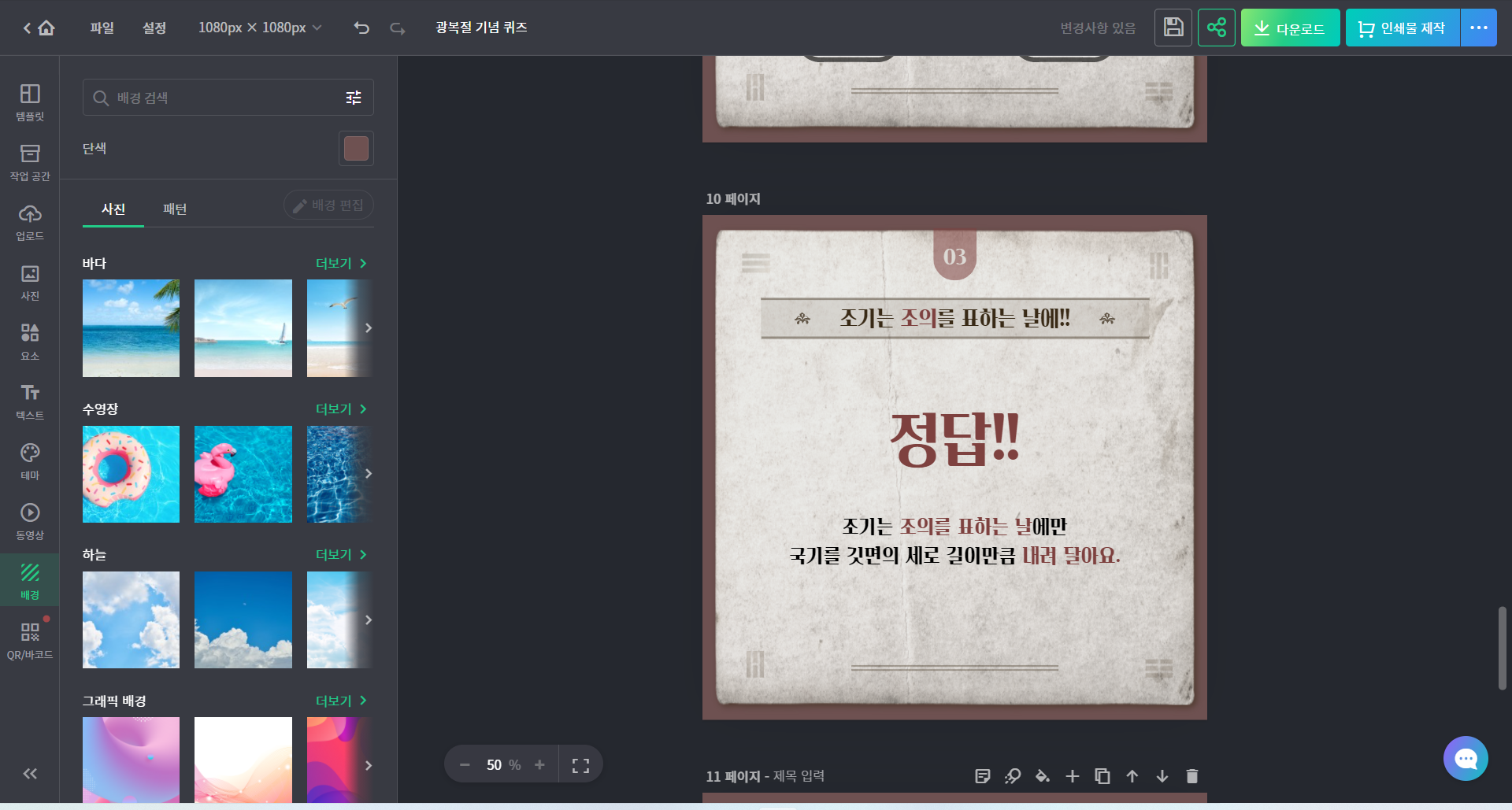 공유하실 때 페이지 스타일을 퀴즈, 심리테스트로 바꿔 줘야
