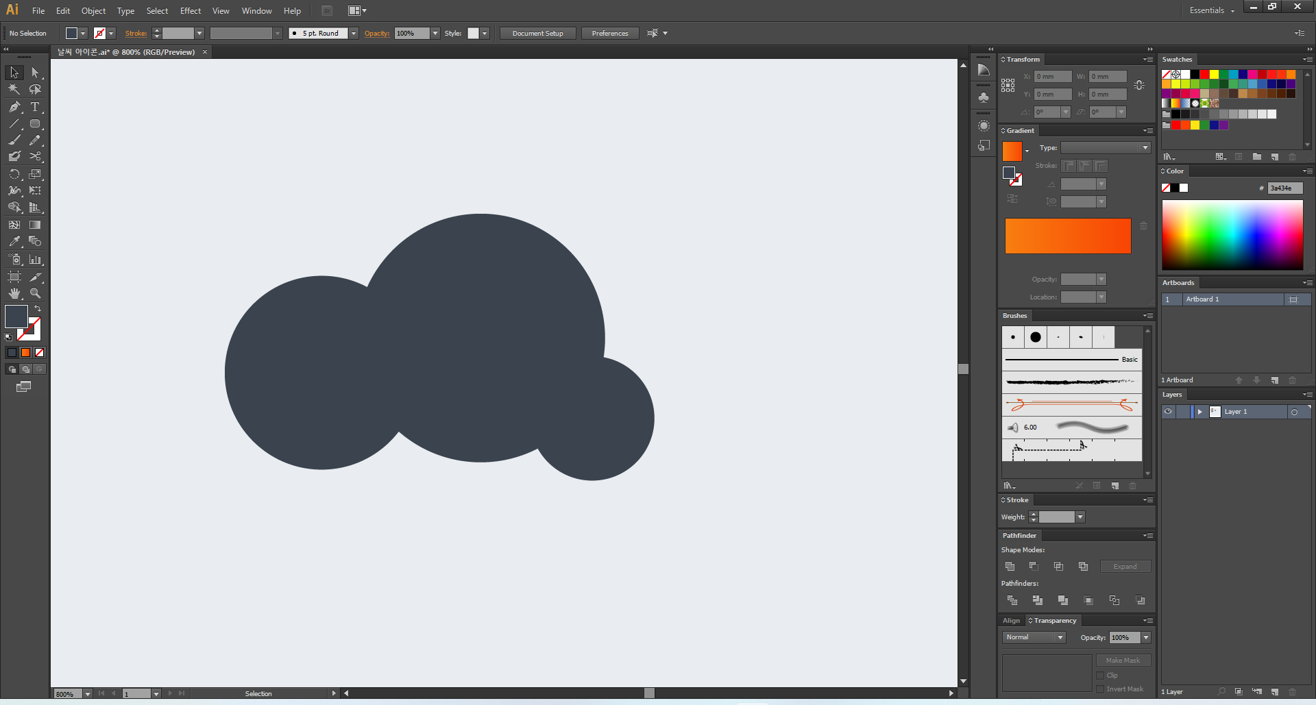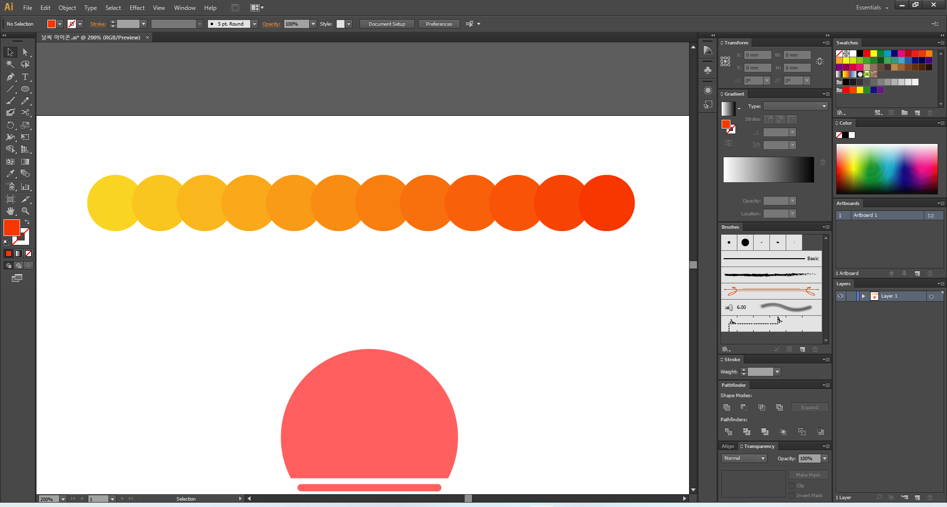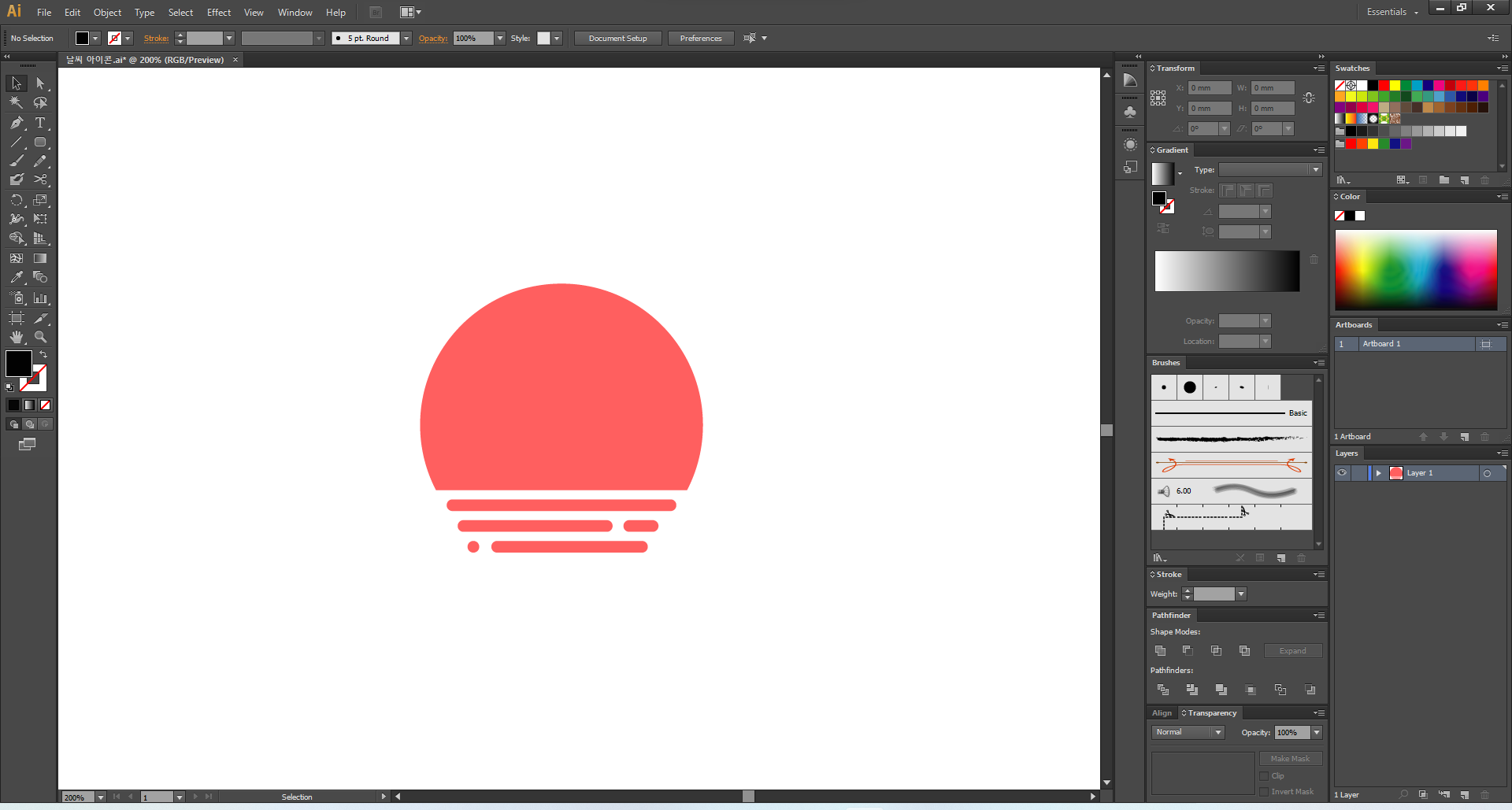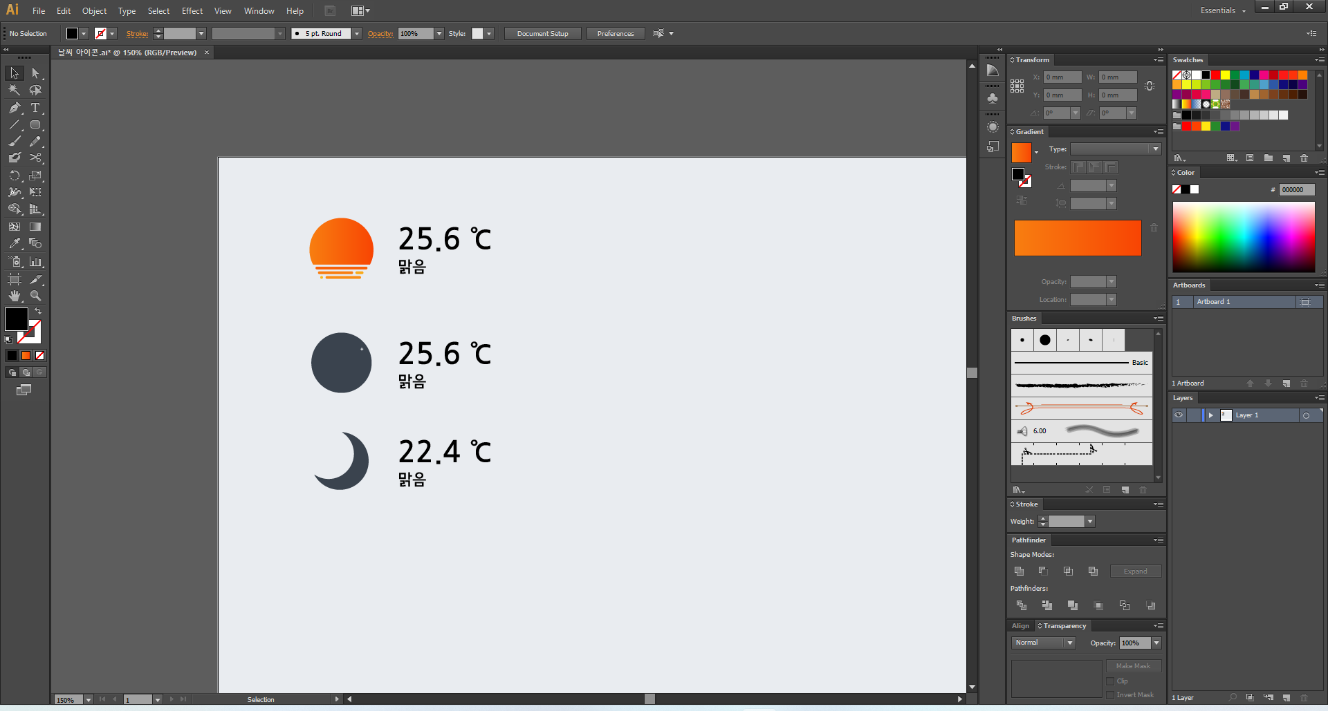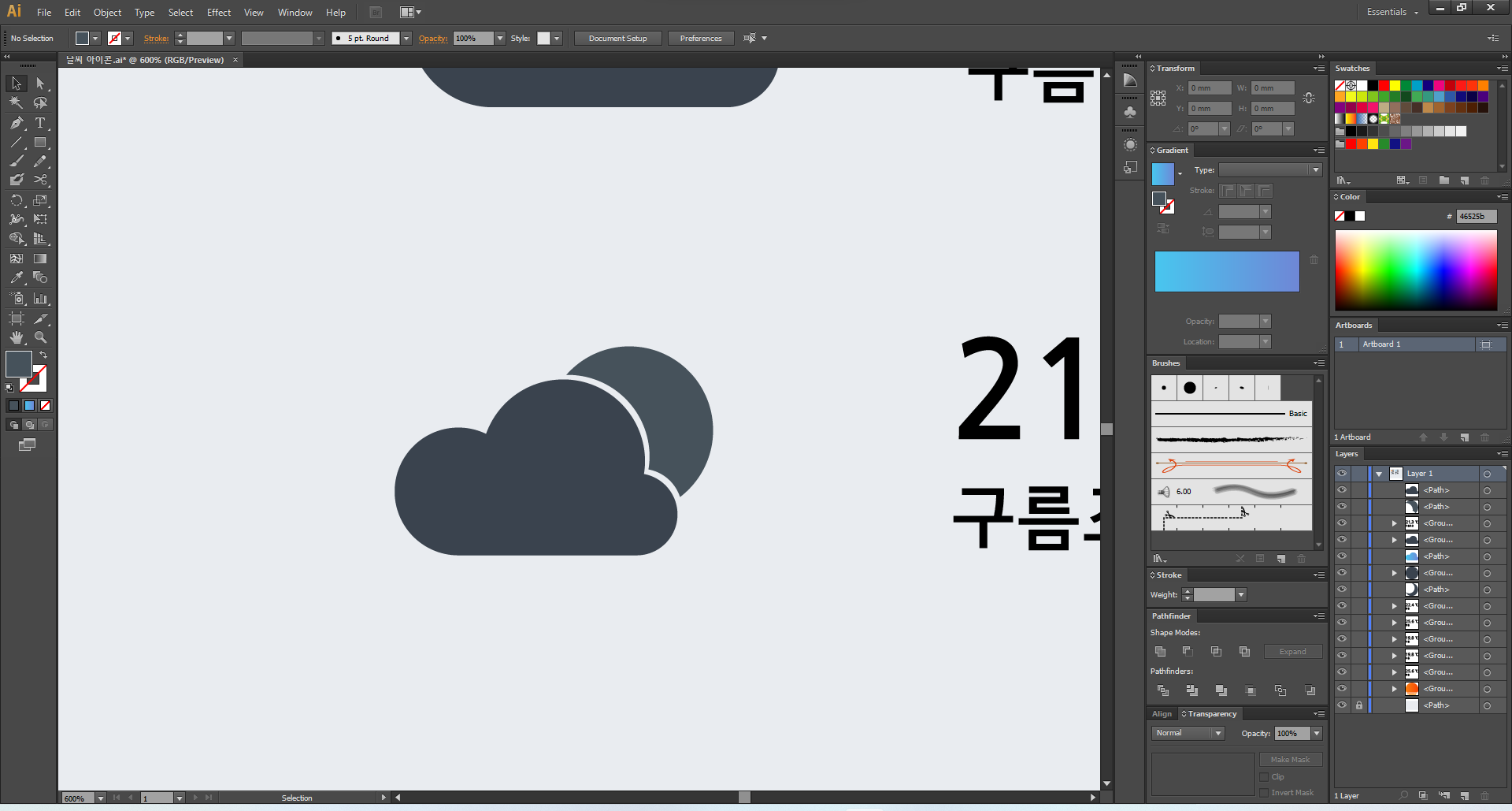 이제 일러스트레이터를 열어 주고, 맑음부터 디자인해 볼게요.