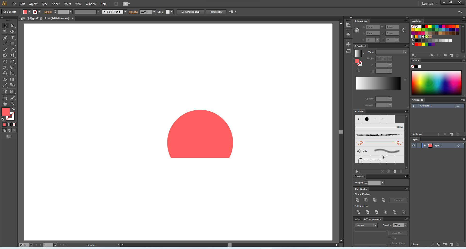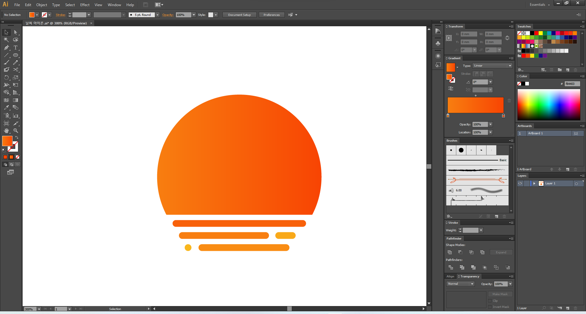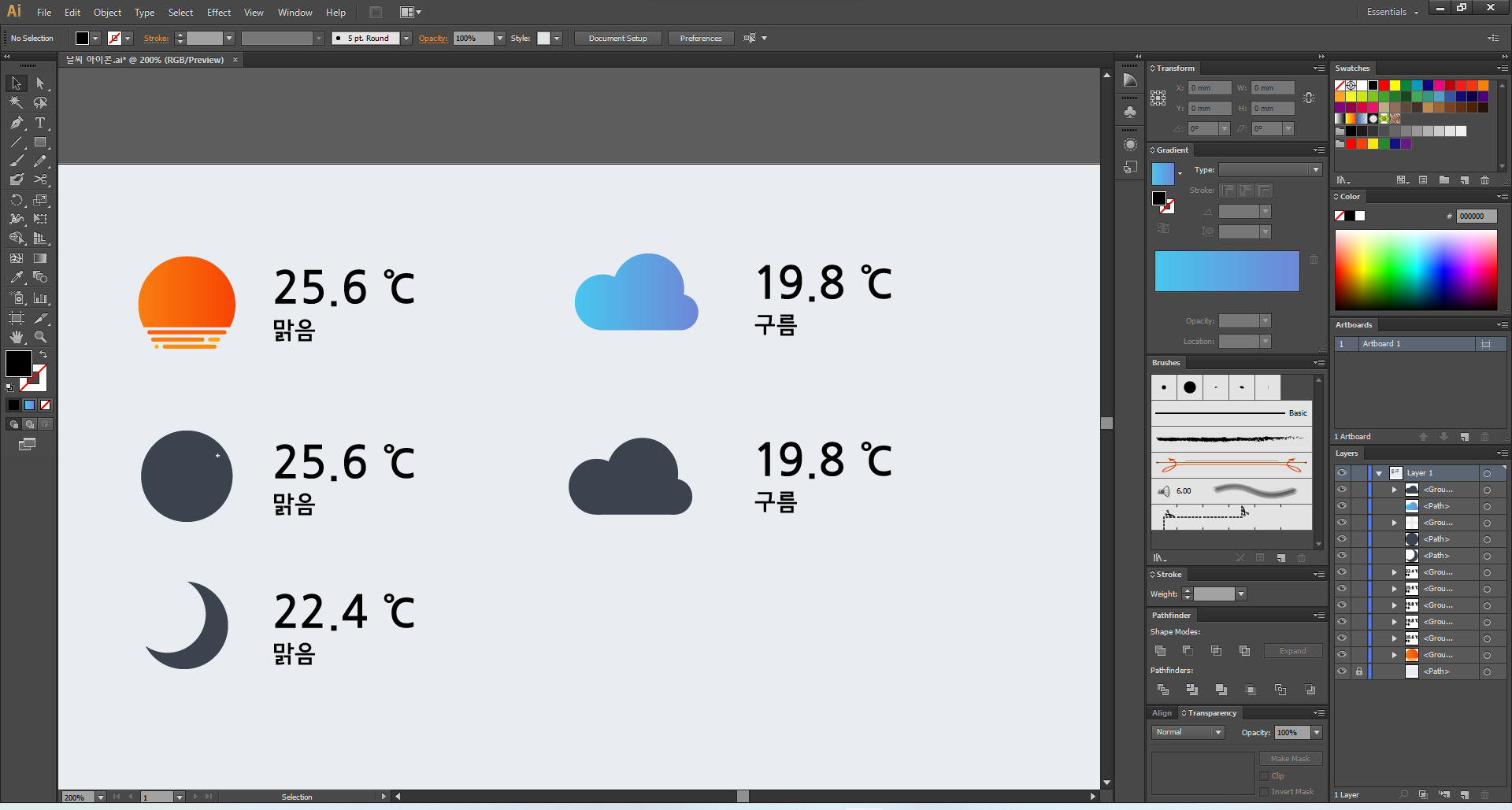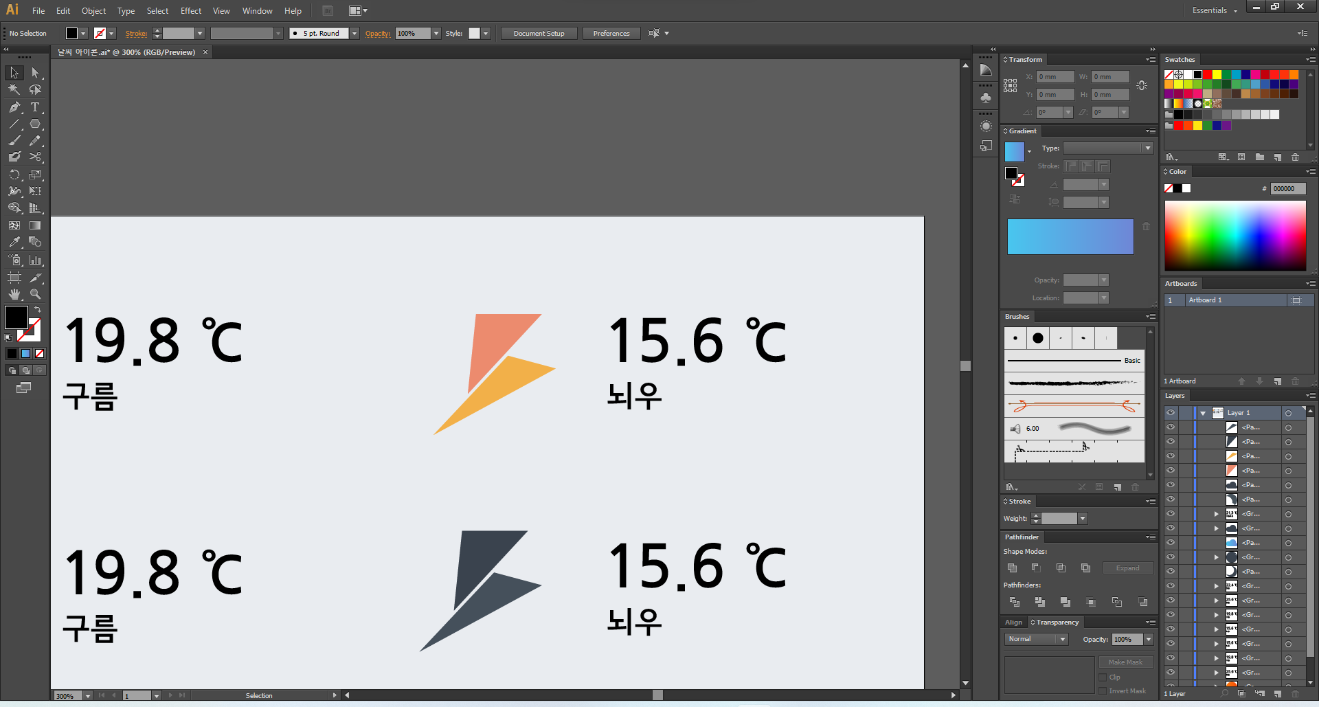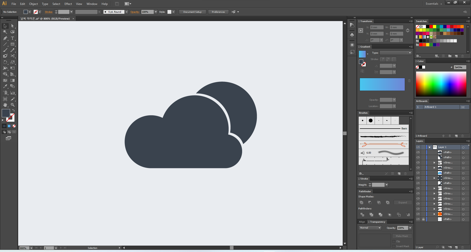 이제 일러스트레이터를 열어 주고, 맑음부터 디자인해 볼게요.