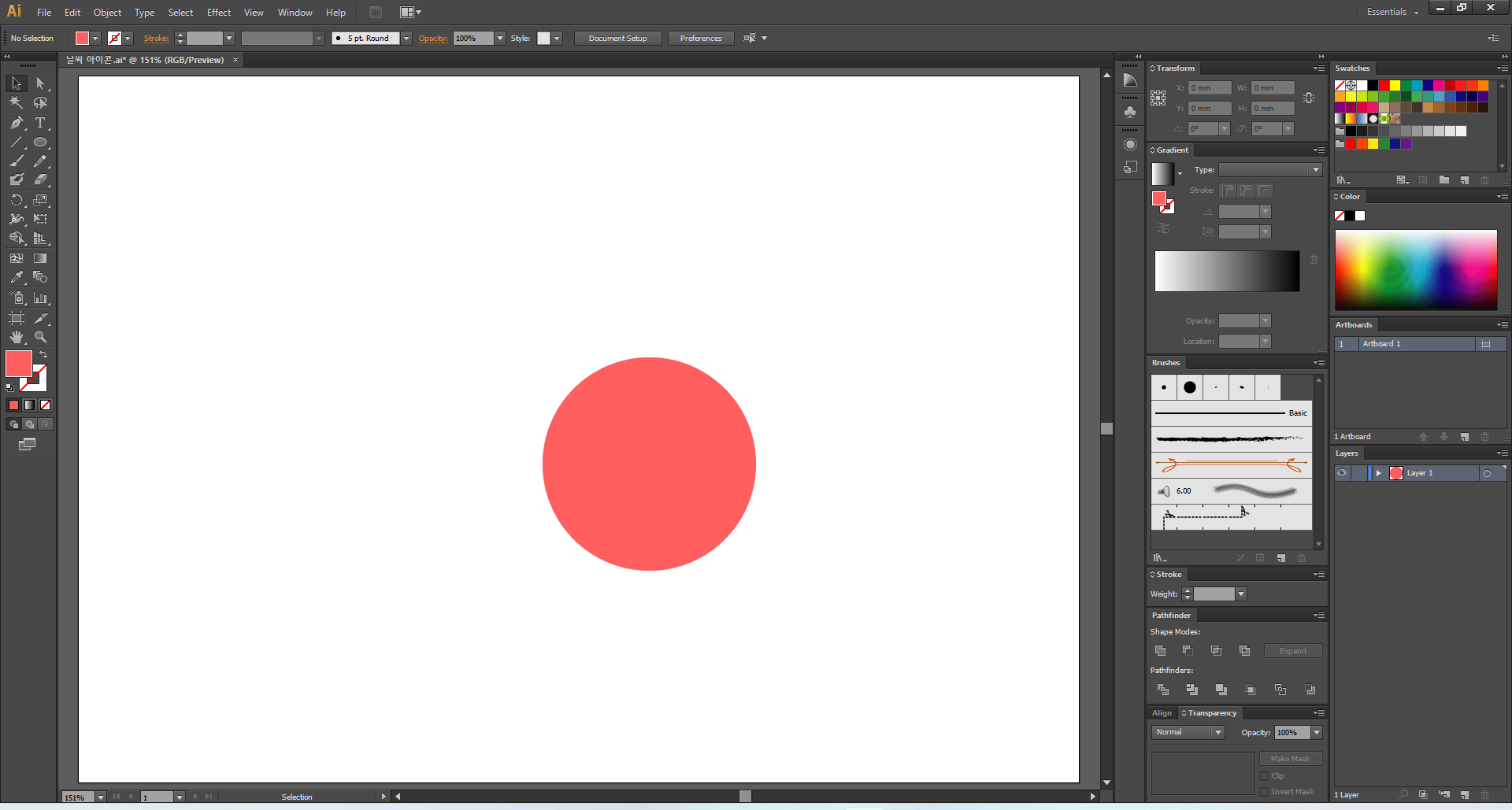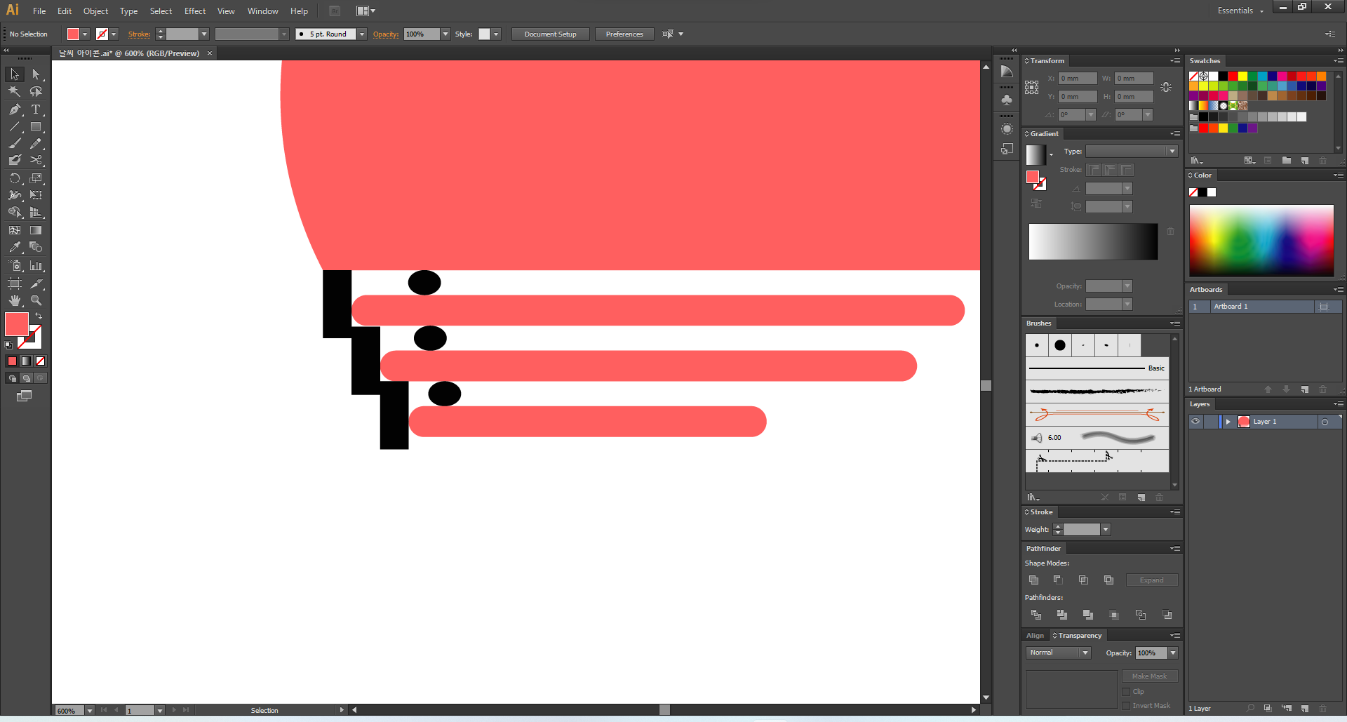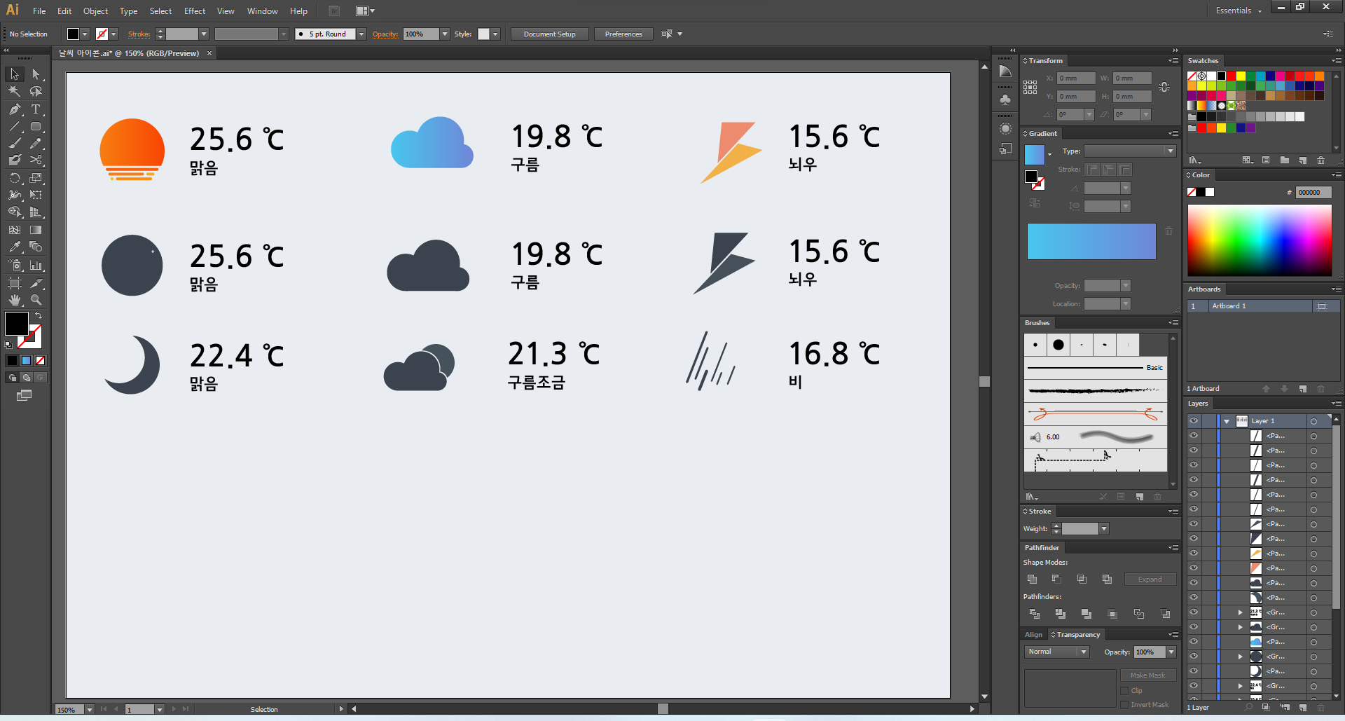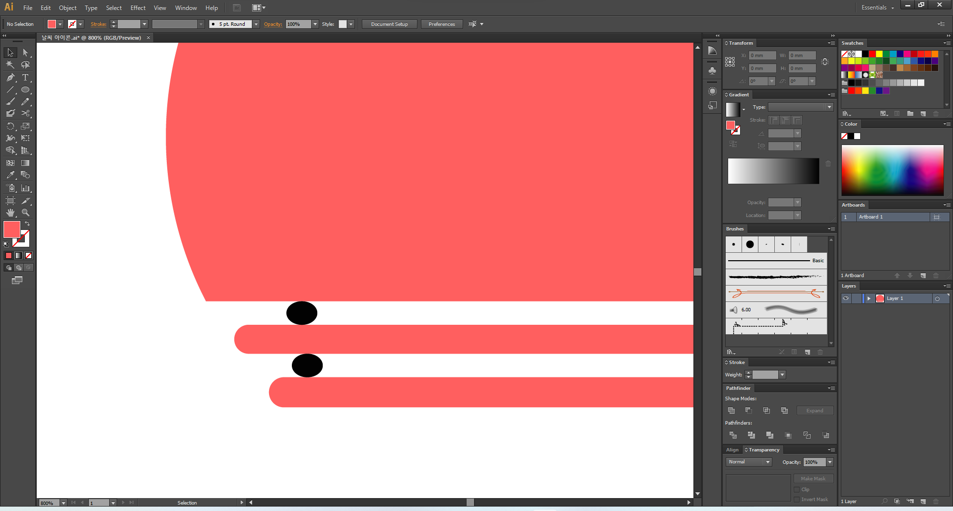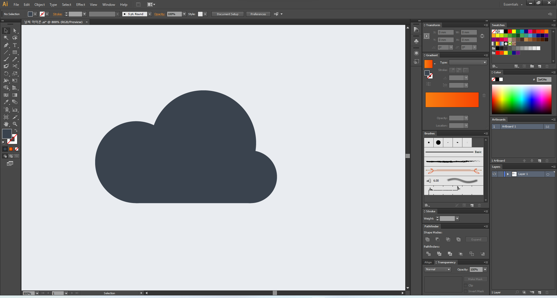이제 일러스트레이터를 열어 주고, 맑음부터 디자인해 볼게요.