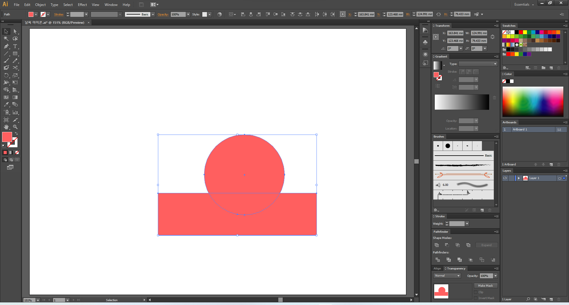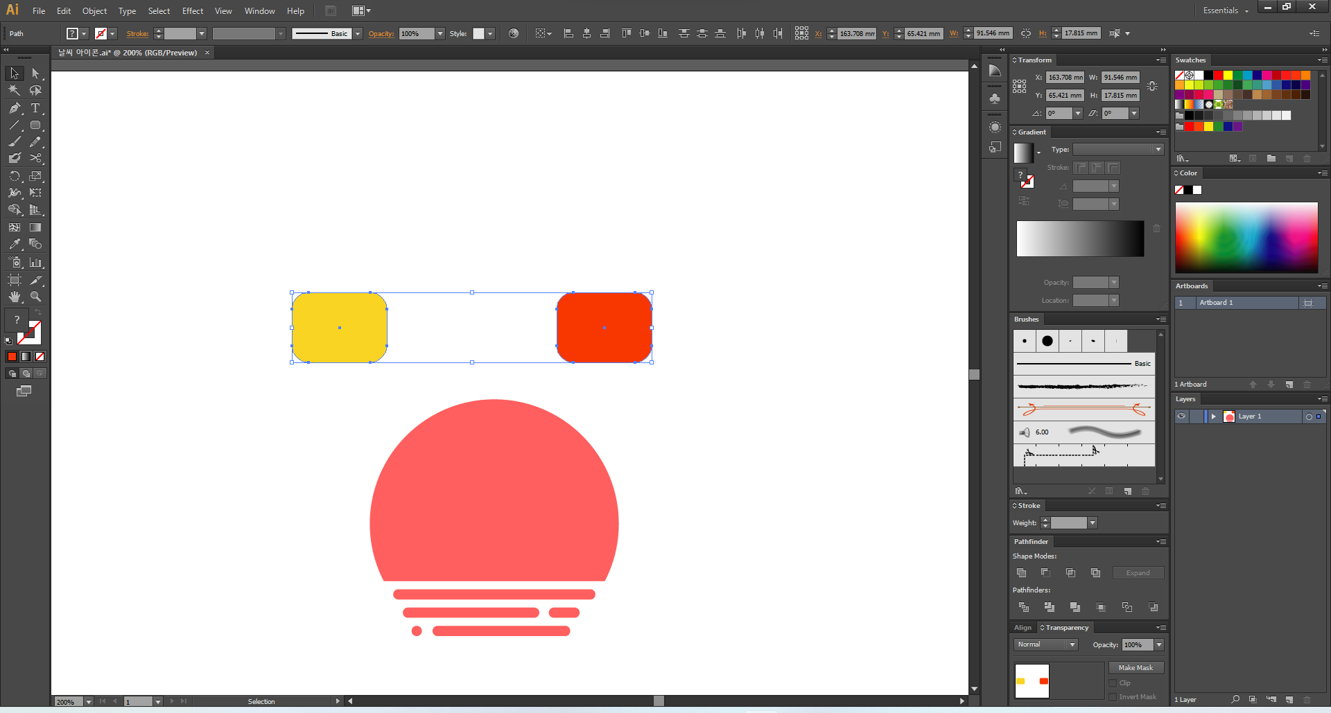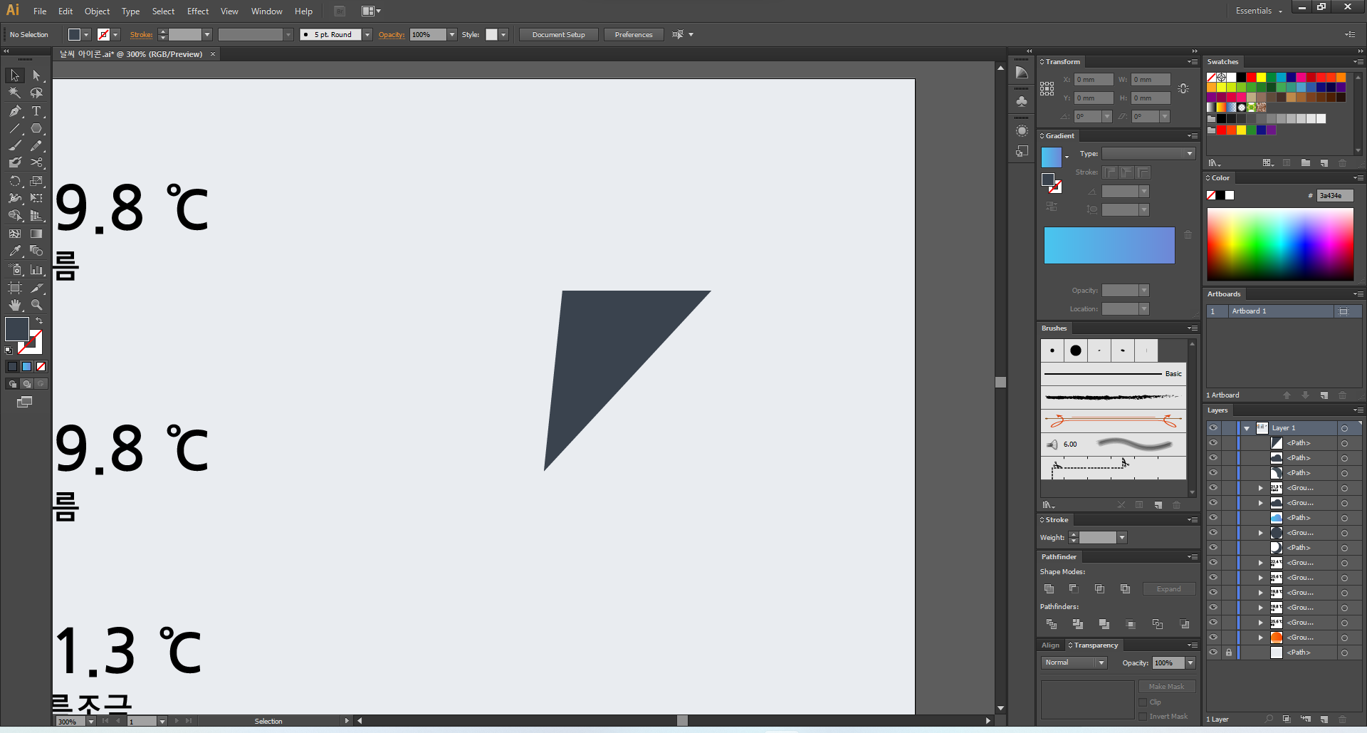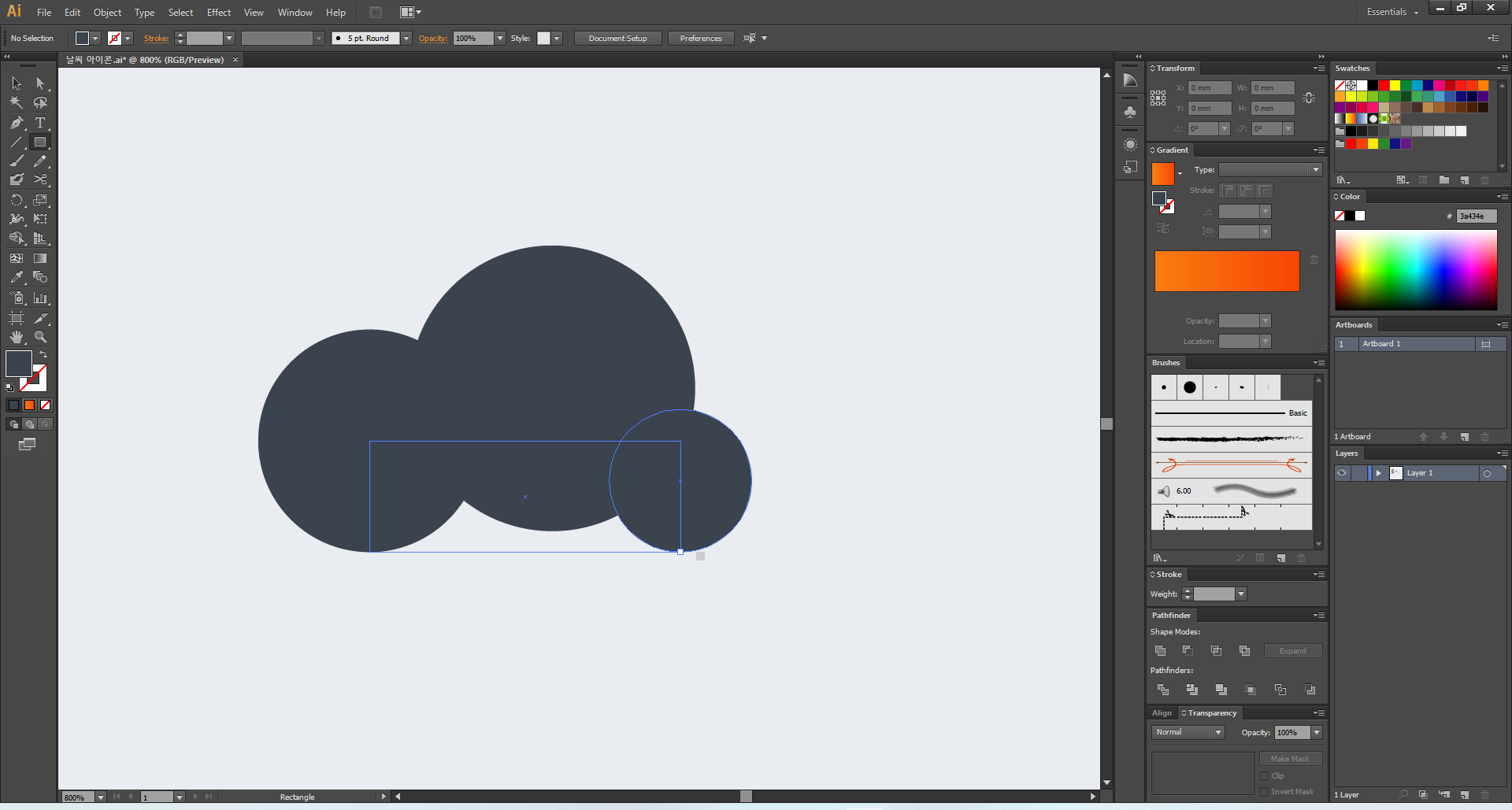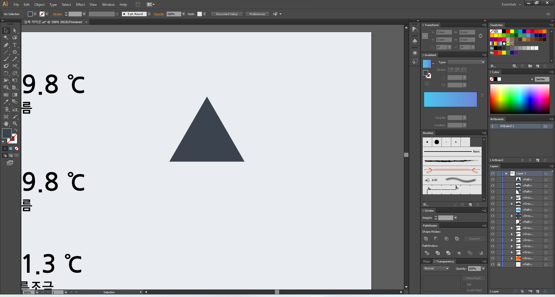 이제 일러스트레이터를 열어 주고, 맑음부터 디자인해 볼게요.