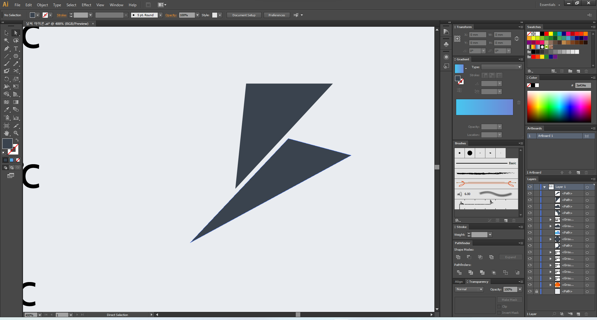 직접 선택 툴 (A)를 눌러 이렇게 변형시켜 봤어요.