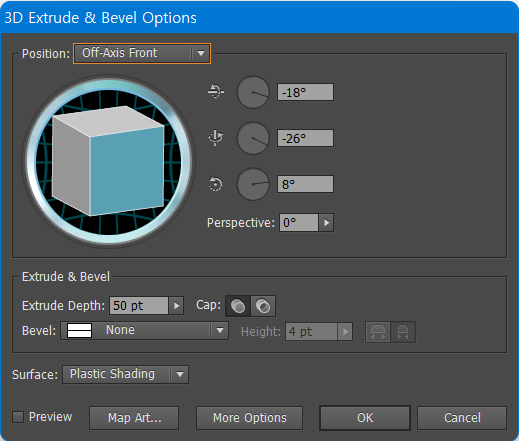 Extrude Depth는 돌출 깊이입니다. 얼마나 깊게 돌출될지 정하는 값이라고 보면 됩니다.