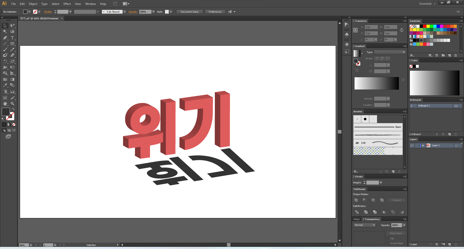 *수정합니다: 텍스트 아웃라인 만들지 않고도 3D 이펙트 되네요;;