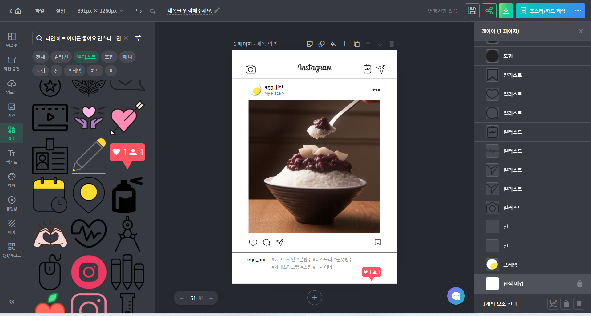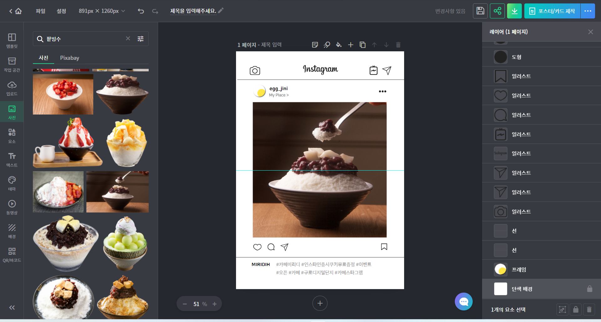 이렇게 쉽게 인스타그램 레이아웃을 만들 수 있답니다.