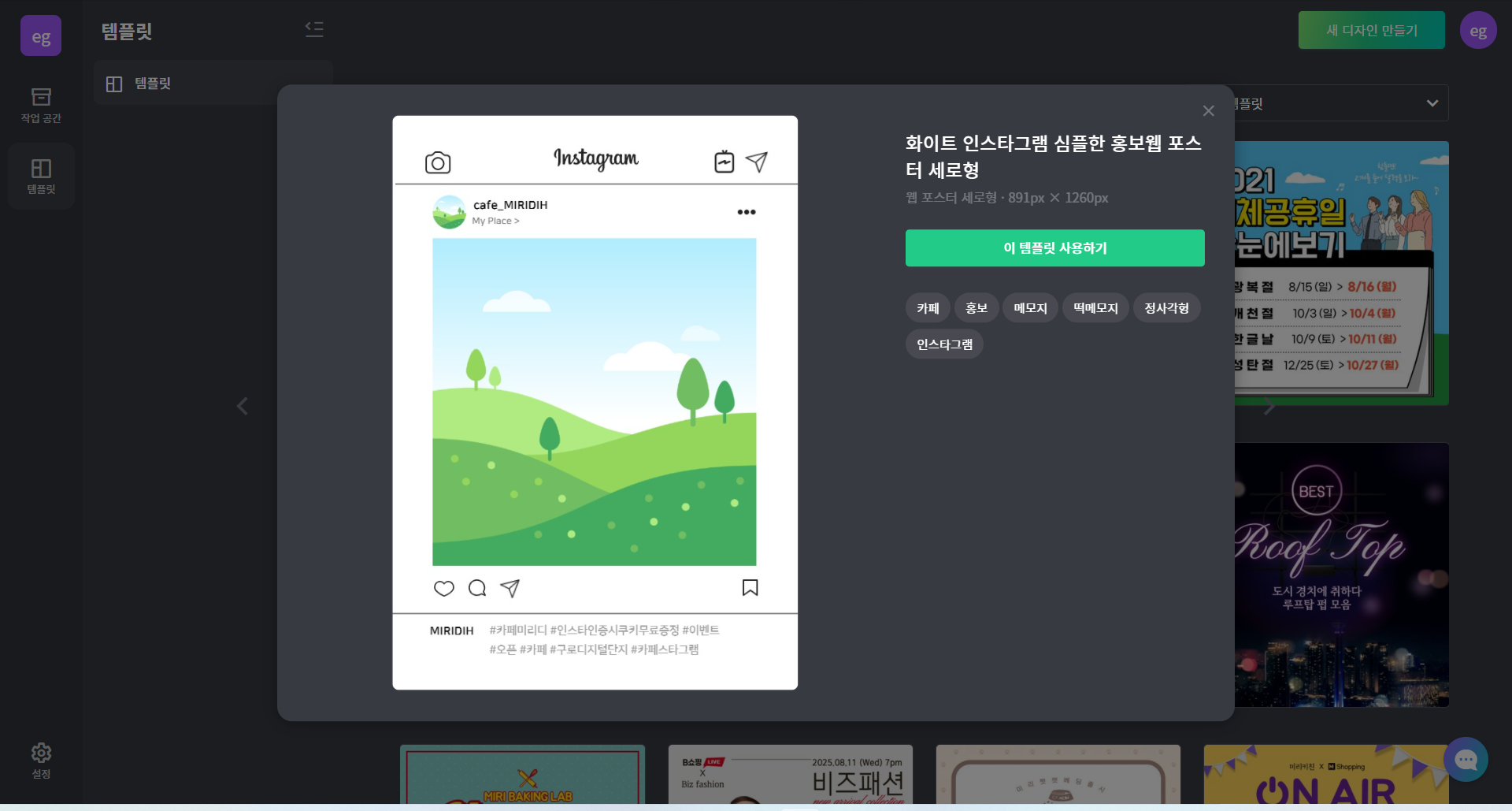 인스타그램 템플릿은 미리캔버스의 기능 중