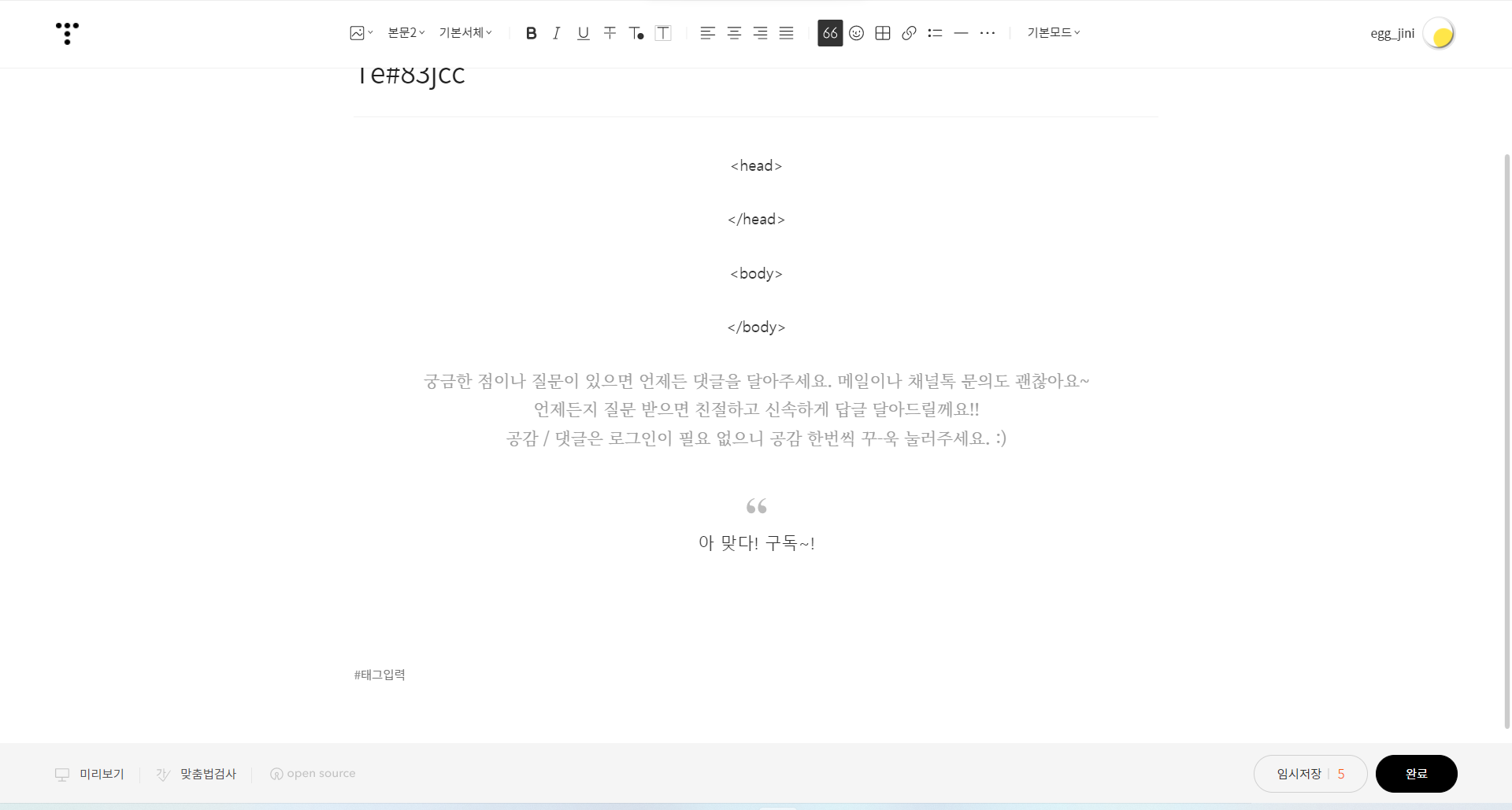 티스토리를 하다 보면 인사말이나 마지막 인사,