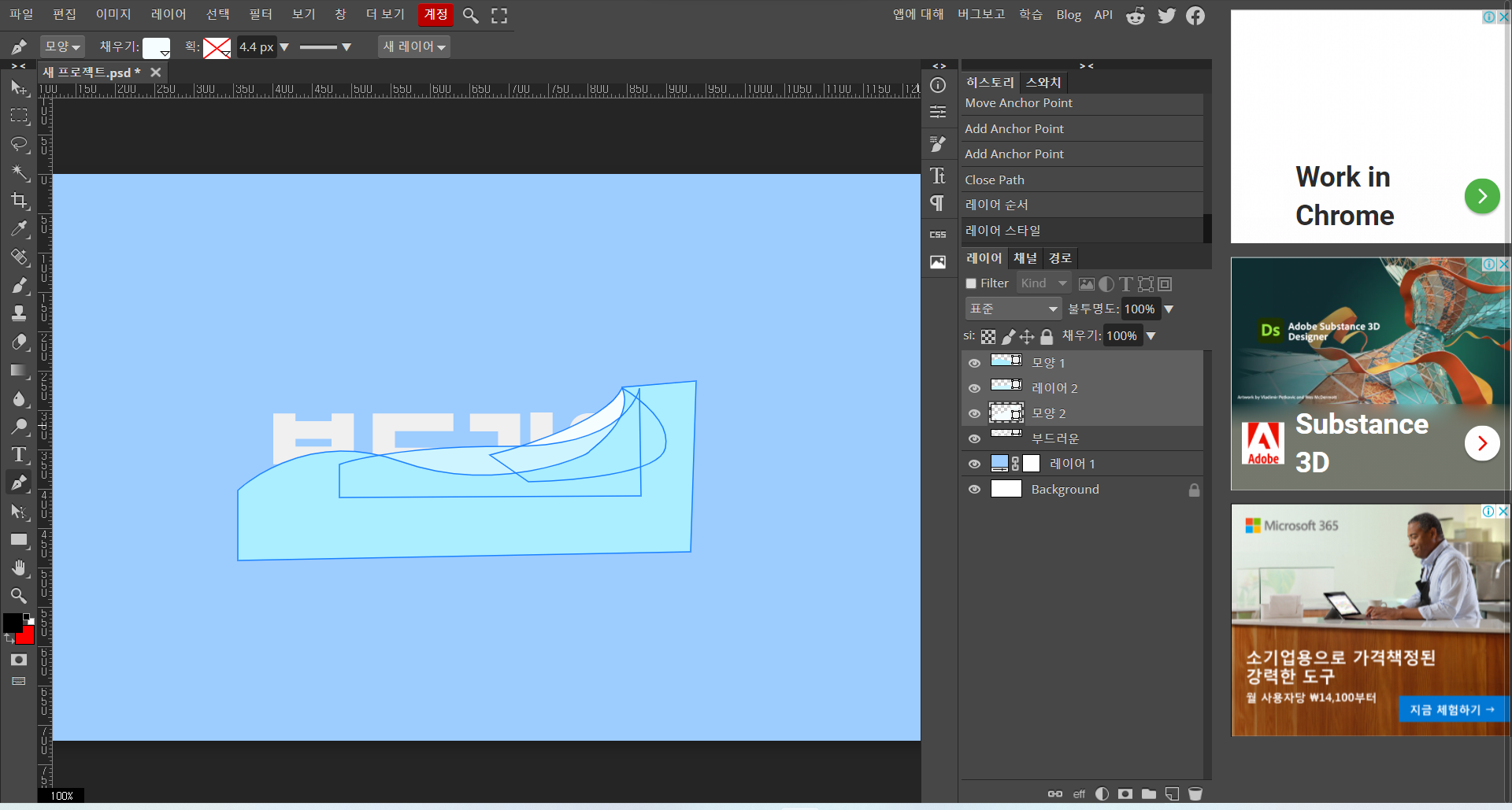 이렇게 펜툴이나 도형툴로 텍스트 안에 넣을 디자인을 만들어주세요.