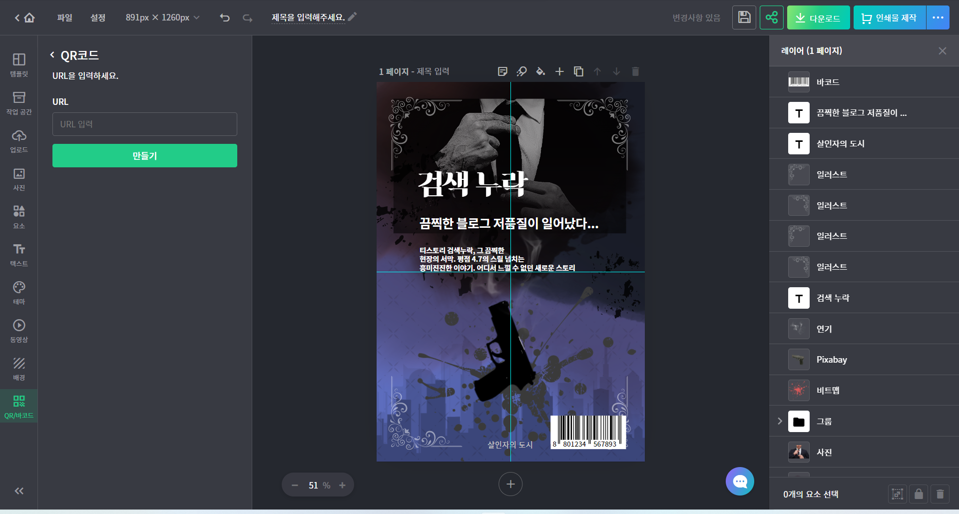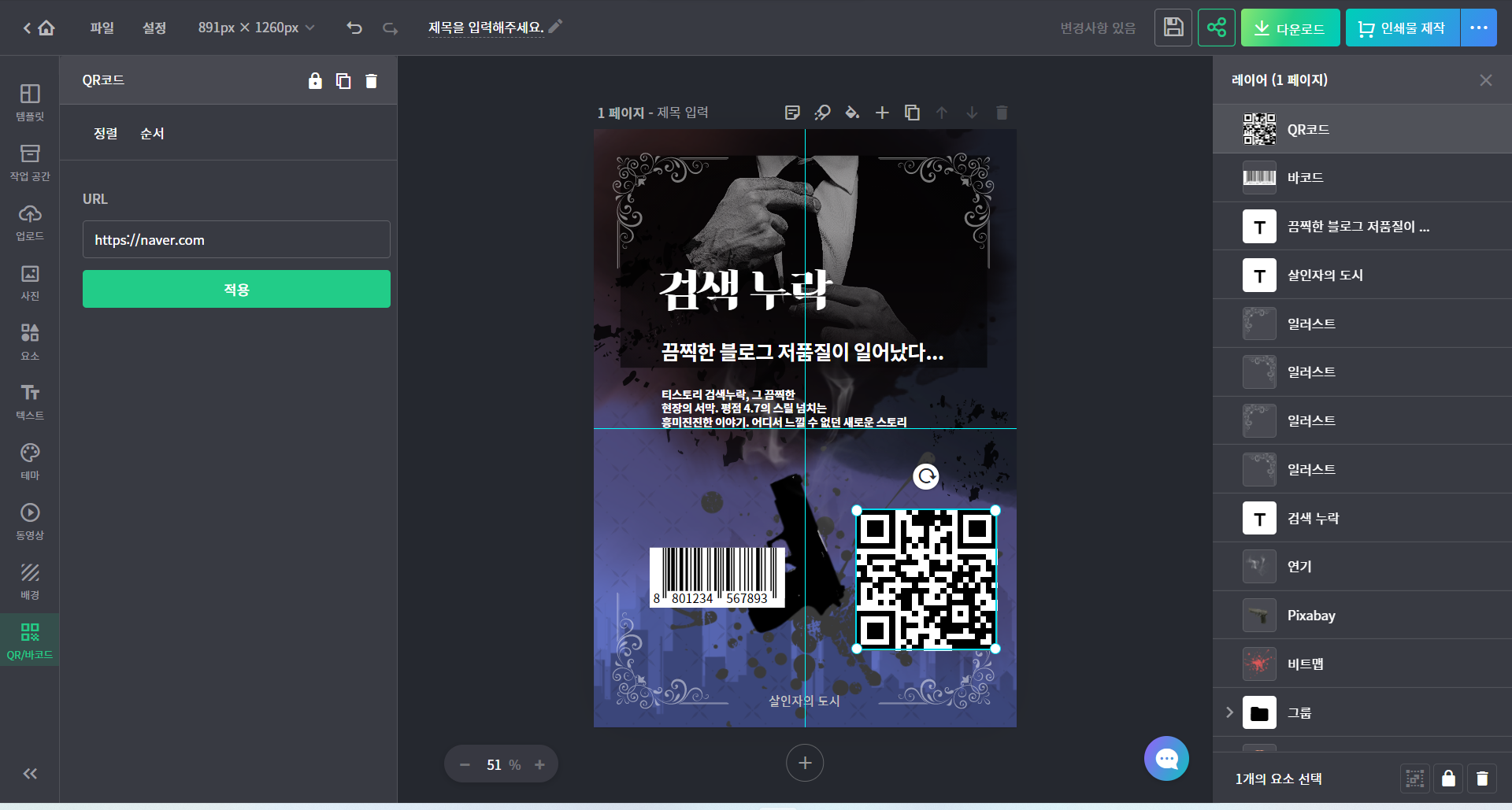 이렇게 바코드를 뒤에 그냥 배치할 수도 있지만, 이러면 디자인과 전체적으로 잘 안 어울리니