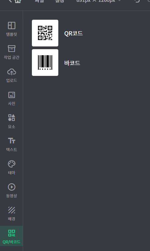 왼쪽 메뉴바에 보시면, 이렇게 QR/바코드라는 메뉴가 있어요.