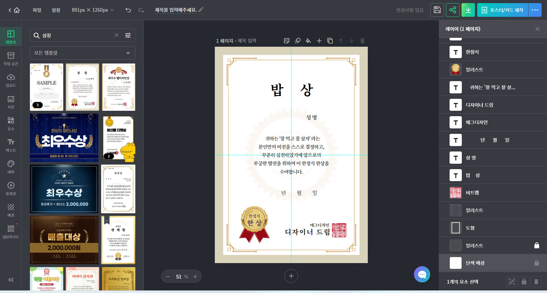 어차피 상장 탬플릿의 크기로 캔버스 사이즈를 변형 할 거거든요